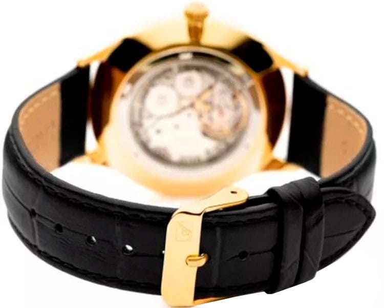Часы Adriatica A1230.1261MXL представляют собой изысканное сочетание традиционного швейцарского мастерства и современного дизайна. Эти механические часы с калибром Sellita SW210 поражают точностью и надежностью, обеспечивая 42-часовой запас хода. Корпус из нержавеющей стали с PVDPVDУльтратонкое покрытие наносится в технике вакуумного напыления, сочетает в себе нитрид титана особой прочности со слоем золота или оксида хрома. Несёт в себе декоративную или защитную функцию. покрытием придает модели элегантный вид и защищает от внешних воздействий. Циферблат цветом шампань с гильошированием завораживает своей текстурой, а римские цифры и штрихи добавляют классический акцент. Прозрачная задняя крышка позволяет любоваться сложной работой механизма. Кожаный черный ремешок с классической застежкой обеспечивает комфортное ношение и подчеркивает стильный внешний вид. Сапфировое стеклоСапфировое стеклоПрочный и надёжный материал из кристалла сапфира синтетического происхождения, характеризующийся особой твёрдостью и устойчивостью к царапинам и повреждениям. надежно защищает циферблат, а водозащита 30 WR делает эти часы практичным выбором для повседневного использования.  Adriatica A1230.1261MXL — это не просто аксессуар, а отражение утонченного вкуса и внимания к деталям, которое станет достойным дополнением к любому образу.