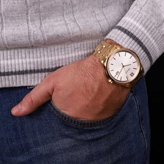 Часы Adriatica A1290.1163Q представляют собой идеальное сочетание элегантности и функциональности, разработанное для современных мужчин. Их стильный циферблат защищен сапфировым стекломСапфировое стеклоПрочный и надёжный материал из кристалла сапфира синтетического происхождения, характеризующийся особой твёрдостью и устойчивостью к царапинам и повреждениям., что придает дополнительную устойчивость к царапинам. Золотистый корпус и безельБезельВнешний ободок, закрепляющий стекло. В спортивных часах так называется поворотное кольцо с делениями на циферблате, выполняет роль таймера – замеряет отрезки времени на шкале. Неподвижный безель – элемент декора. Однонаправленно вращающийся безель на дайверских часах позволяет фиксировать моменты погружения и выныривания на поверхность. выполнен из нержавеющей стали с PVDPVDУльтратонкое покрытие наносится в технике вакуумного напыления, сочетает в себе нитрид титана особой прочности со слоем золота или оксида хрома. Несёт в себе декоративную или защитную функцию. покрытием, подчеркивая их изысканность и долговечность. Надежный кварцевый механизм с калибром ETA F06 (PreciDrive) гарантирует точность времени, а водозащита WR 50 (5 ATM) обеспечивает защиту от воды в различных условиях. Браслет из нержавеющей стали, с PVDPVDУльтратонкое покрытие наносится в технике вакуумного напыления, сочетает в себе нитрид титана особой прочности со слоем золота или оксида хрома. Несёт в себе декоративную или защитную функцию.-покрытием и с застежкой «бабочка»Застёжка "бабочка"Такой вид застёжки дополняется предохранителями, помогающими избежать случайного раскрытия браслета. Обладают изящным исполнением. гармонично дополняет общий дизайн и обеспечивает комфортное ношение на запястье. Часы оснащены функцией отображения даты в окошке в положении 3 часа, что добавляет практичности в повседневной жизни. Люминесцентное покрытиеЛюминесцентное покрытиеПозволяет считывать показания времени в темноте. Производители наносят на стрелки, часовые индексы, безель или поверхность циферблата светонакопительный состав, дающий холодное свечение. на стрелках и метках обеспечивает отличную видимость в темноте.