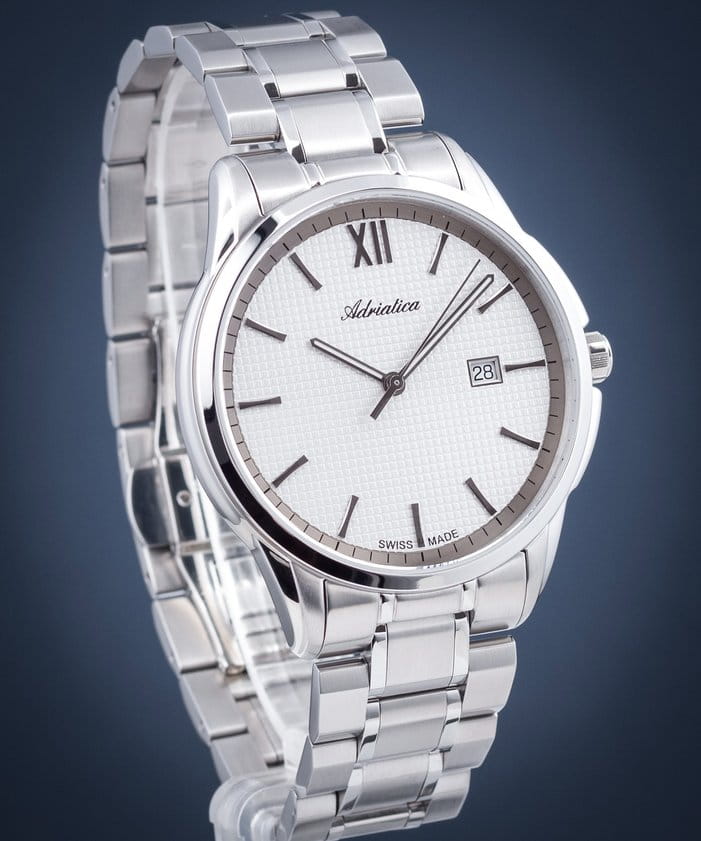 Часы Adriatica A1290.5163Q представляют собой идеальное сочетание элегантности и функциональности, разработанное для современных мужчин. Их стильный циферблат защищен сапфировым стекломСапфировое стеклоПрочный и надёжный материал из кристалла сапфира синтетического происхождения, характеризующийся особой твёрдостью и устойчивостью к царапинам и повреждениям., что придает дополнительную устойчивость к царапинам. Корпус из нержавеющей стали подчеркивает их изысканность и долговечность. Надежный кварцевый механизм с калибром ETA F06 (PreciDrive) гарантирует точность времени, а водозащита WR 50 (5 ATM) обеспечивает защиту от воды в различных условиях. Браслет из нержавеющей стали с застежкой «бабочка»Застёжка "бабочка"Такой вид застёжки дополняется предохранителями, помогающими избежать случайного раскрытия браслета. Обладают изящным исполнением. гармонично дополняет общий дизайн и обеспечивает комфортное ношение на запястье. Часы оснащены функцией отображения даты в окошке в положении 3 часа, что добавляет практичности в повседневной жизни. Люминесцентное покрытиеЛюминесцентное покрытиеПозволяет считывать показания времени в темноте. Производители наносят на стрелки, часовые индексы, безель или поверхность циферблата светонакопительный состав, дающий холодное свечение. на стрелках и метках обеспечивает отличную видимость в темноте.