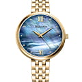Женские часы Adriatica Essence A3760.118WQ имеют кварцевый механизм с высокой точностью. Минеральное стеклоМинеральное стеклоМинеральное стекло представляет собой искусственно выращенный минерал кварца. Такое стекло отличается особой устойчивостью к повреждениям и царапинам. Уступает по некоторым качествам сапфировому стеклу. обеспечивает надежную защиту перламутрового синего циферблата, на котором расположились метки в виде точек и римские цифры VI и XII. Корпус часов изготовлен из нержавеющей стали с золотистым PVDPVDУльтратонкое покрытие наносится в технике вакуумного напыления, сочетает в себе нитрид титана особой прочности со слоем золота или оксида хрома. Несёт в себе декоративную или защитную функцию. покрытием, что придает часам утонченный и стильный вид. Браслет из нержавеющей стали с золотистым PVDPVDУльтратонкое покрытие наносится в технике вакуумного напыления, сочетает в себе нитрид титана особой прочности со слоем золота или оксида хрома. Несёт в себе декоративную или защитную функцию. покрытием и раскладной застёжкойРаскладная застёжкаТакой тип застёжки используется только на браслетах из металла. Она никогда не раскрывается полностью, происходит разделение на 2 и более частей. Раскладывающая застёжка снизит вероятность потери часов к минимуму., гармонично дополняет общий дизайн и обеспечивает комфортное ношение на запястье. Надежный кварцевый механизм с калибром RONDA 763 гарантирует точность времени, а водозащита WR 30 (3 ATM) делает эти часы практичным выбором для повседневного использования.