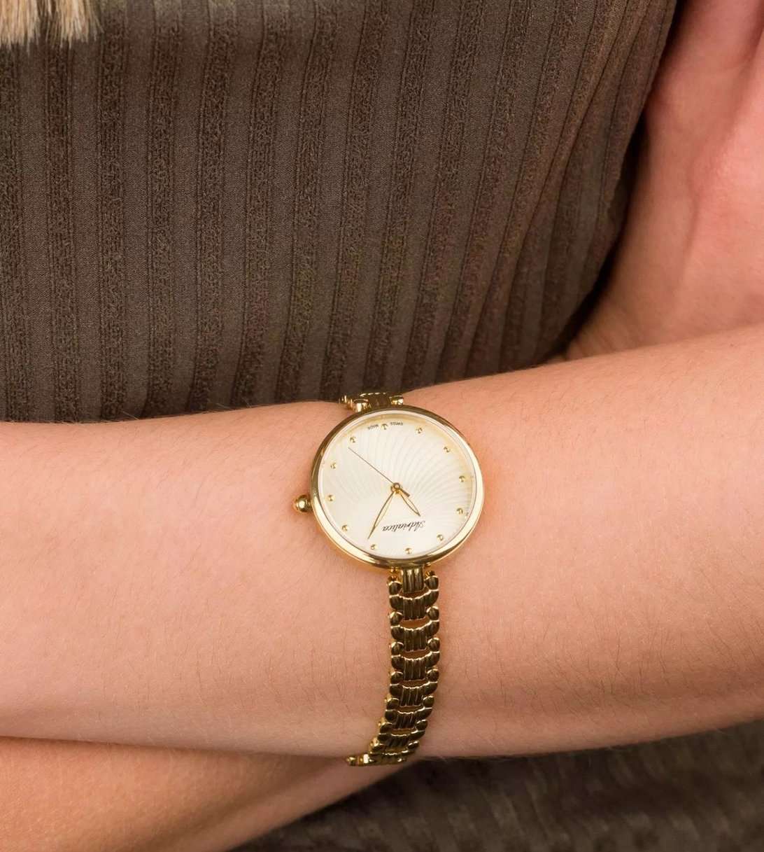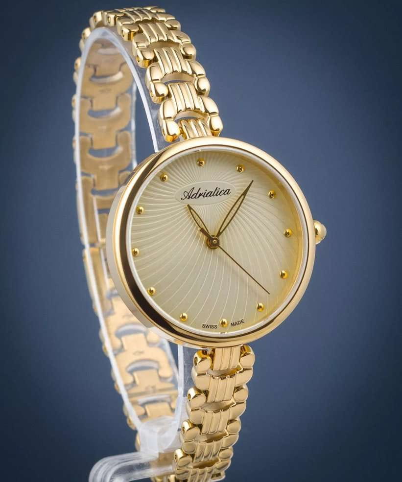 Изысканные женские часы Adriatica A3822.1141Q, произведенные в Швейцарии. Эти часы идеально подойдут для женщин, ценящих элегантность и стиль. Часы оснащены надежным кварцевым механизмом Ronda 763, обеспечивающим точность и долговечность. Корпус диаметром 30 мм и толщиной 7 мм выполнен из стали с PVDPVDУльтратонкое покрытие наносится в технике вакуумного напыления, сочетает в себе нитрид титана особой прочности со слоем золота или оксида хрома. Несёт в себе декоративную или защитную функцию. покрытием, что придает часам современный и утонченный вид. Золотистый циферблат, украшенный точками, придает дополнительную изысканность. Минеральное стеклоМинеральное стеклоМинеральное стекло представляет собой искусственно выращенный минерал кварца. Такое стекло отличается особой устойчивостью к повреждениям и царапинам. Уступает по некоторым качествам сапфировому стеклу. защищает циферблат от повреждений, а водозащита уровня 30WR позволяет использовать часы в условиях легкой влажности. Стальной браслет с PVDPVDУльтратонкое покрытие наносится в технике вакуумного напыления, сочетает в себе нитрид титана особой прочности со слоем золота или оксида хрома. Несёт в себе декоративную или защитную функцию. покрытием золотистого цвета с ювелирной застежкой обеспечивает комфортное ношение и надежную фиксацию на запястье.