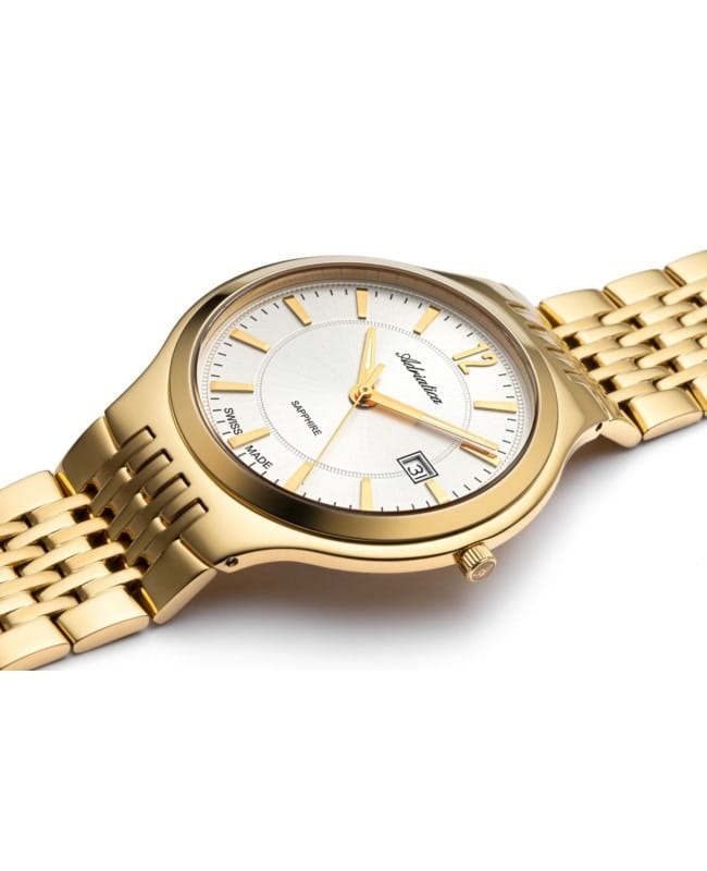 Мужские швейцарские наручные часы Adriatica Premiere A8296.1153Q, кварцевый механизм с высокой точностью. Сапфировое стеклоСапфировое стеклоПрочный и надёжный материал из кристалла сапфира синтетического происхождения, характеризующийся особой твёрдостью и устойчивостью к царапинам и повреждениям. устойчивое к появлению царапин, обладающее высокой прозрачностью защищает серебристый циферблат, на котором расположилось окошко даты в районе 3 часа, а также метки в виде штрихов и арабская цифра 12.  Корпус часов изготовлен из стали с PVD-покрытиемPVDУльтратонкое покрытие наносится в технике вакуумного напыления, сочетает в себе нитрид титана особой прочности со слоем золота или оксида хрома. Несёт в себе декоративную или защитную функцию.. Стальной браслет на раскладной застёжкеРаскладная застёжкаТакой тип застёжки используется только на браслетах из металла. Она никогда не раскрывается полностью, происходит разделение на 2 и более частей. Раскладывающая застёжка снизит вероятность потери часов к минимуму. с PVD-покрытиемPVDУльтратонкое покрытие наносится в технике вакуумного напыления, сочетает в себе нитрид титана особой прочности со слоем золота или оксида хрома. Несёт в себе декоративную или защитную функцию.. Надежный кварцевый механизм с калибром ETA F06 гарантирует точность времени, а водозащита 50 метров, позволит плавать, что позволит защитить корпус от случайных брызг или капель дождя.