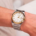 Часы Adriatica Automatic A8326.2113A воплощают в себе элегантность и функциональность, идеально подходящие для современных мужчин, ценящих швейцарское качество. Их белый циферблат защищенный сапфировым стекломСапфировое стеклоПрочный и надёжный материал из кристалла сапфира синтетического происхождения, характеризующийся особой твёрдостью и устойчивостью к царапинам и повреждениям., заключен в корпус из нержавеющей стали диаметром 40 мм и толщиной 10 мм, а на безельБезельВнешний ободок, закрепляющий стекло. В спортивных часах так называется поворотное кольцо с делениями на циферблате, выполняет роль таймера – замеряет отрезки времени на шкале. Неподвижный безель – элемент декора. Однонаправленно вращающийся безель на дайверских часах позволяет фиксировать моменты погружения и выныривания на поверхность. нанесено PVDPVDУльтратонкое покрытие наносится в технике вакуумного напыления, сочетает в себе нитрид титана особой прочности со слоем золота или оксида хрома. Несёт в себе декоративную или защитную функцию. покрытие. Эти механические часы с автоподзаводом имеют калибр Ronda 150, который обеспечивает высокую точность, а водозащита 5 ATM делает часы устойчивыми к воздействию воды. Стальной браслет с раскладной застёжкойРаскладная застёжкаТакой тип застёжки используется только на браслетах из металла. Она никогда не раскрывается полностью, происходит разделение на 2 и более частей. Раскладывающая застёжка снизит вероятность потери часов к минимуму. обеспечивает комфортное и надежное ношение. Часы оснащены функцией отображения даты в окошке в положении 3 часа, что добавляет практичности в повседневной жизни. Люминесцентное покрытиеЛюминесцентное покрытиеПозволяет считывать показания времени в темноте. Производители наносят на стрелки, часовые индексы, безель или поверхность циферблата светонакопительный состав, дающий холодное свечение. на стрелках и метках обеспечивает отличную видимость в темноте.