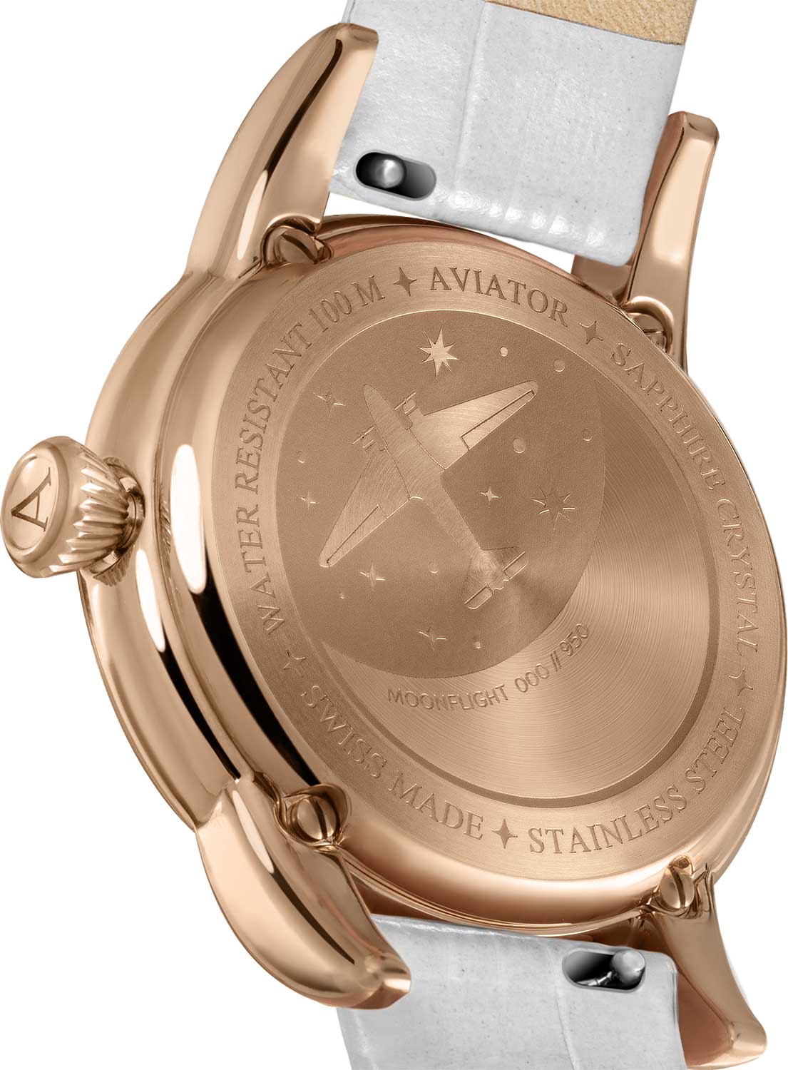 Aviator “Douglas Moonflight” — это гармоничное сочетание авиационного наследия, женской элегантности и технической изысканности, воплощённое в элегантном и функциональном аксессуаре.