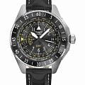 Циферблат защищён сапфировым стекломСапфировое стеклоПрочный и надёжный материал из кристалла сапфира синтетического происхождения, характеризующийся особой твёрдостью и устойчивостью к царапинам и повреждениям. с антибликовым покрытием, гарантирующим чёткий обзор без отражений. Сердцем модели является швейцарский кварцевый механизм Ronda 515.24D, который обеспечивает работу GMT, дату и высшую точность в диапазоне −10/+20 с/мес. .
