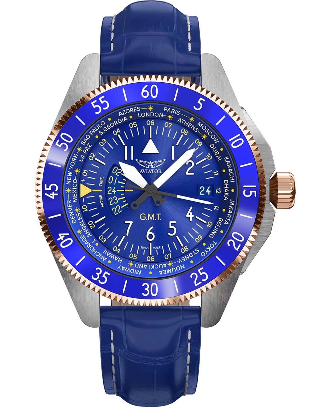 Швейцарские мужские часы Aviator Airacobra GMT V.1.37.3.308.4