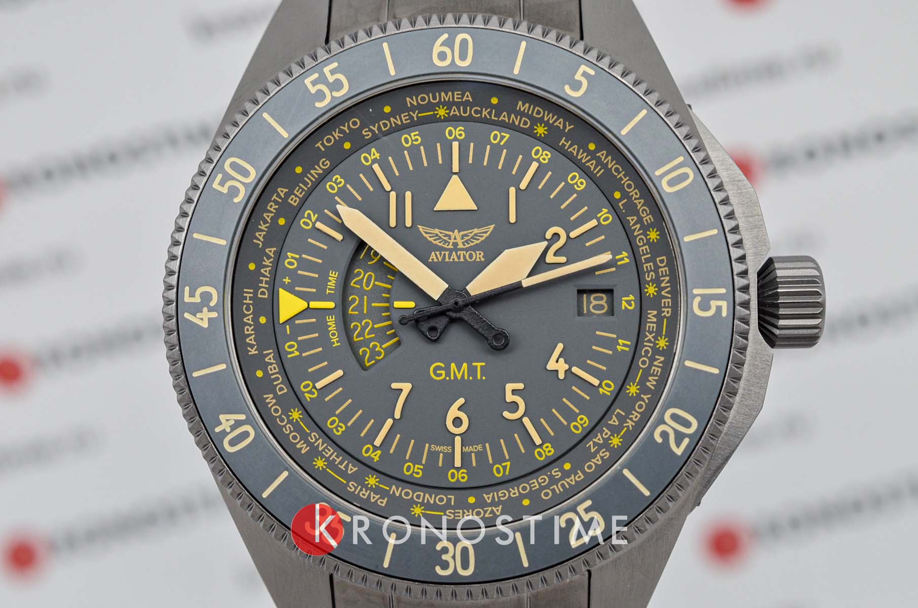 Aviator Airacobra V.1.37.7.305.5 “Airacobra GMT” — сбалансированный швейцарский пилотский GMT, сочетающий техническую строгость с удобными функциями для путешествий. Корпус диаметром 43 мм из нержавеющей стали с PVD-покрытиемPVDУльтратонкое покрытие наносится в технике вакуумного напыления, сочетает в себе нитрид титана особой прочности со слоем золота или оксида хрома. Несёт в себе декоративную или защитную функцию. обеспечивает уверенное ощущение надёжности, а герметичность до 100 м защищает при любой погоде .