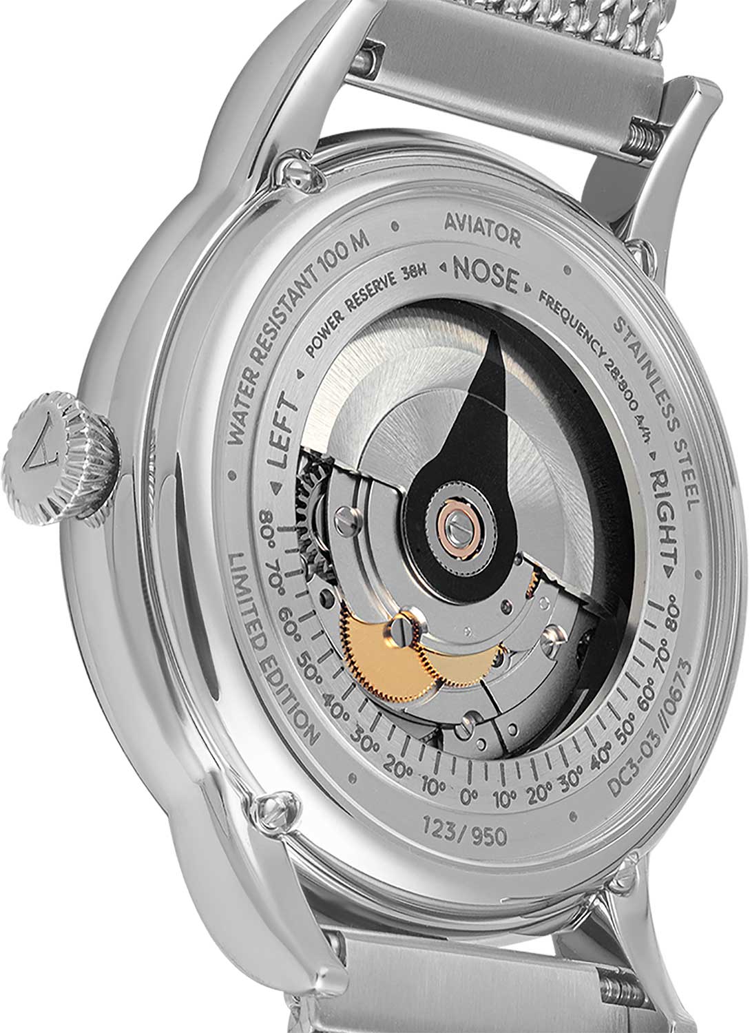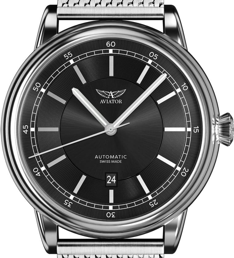 Aviator Douglas DC-3 V.3.32.0.232.5 — швейцарские часы в классике авиадизайна, сочетающие безупречную читаемость и высокую надёжность. Лимитированная серия. Корпус диаметром 45 мм выполнен из нержавеющей стали. Накладные метки выполнены в виде штрихов. Окошко даты находится в положении 6 часов. Часовые метки и стрелки покрыты люминесцентным покрытиемЛюминесцентное покрытиеПозволяет считывать показания времени в темноте. Производители наносят на стрелки, часовые индексы, безель или поверхность циферблата светонакопительный состав, дающий холодное свечение. Superluminova, позволяющим легко определять время даже в тёмное время суток. Поверхность защищена прочным сапфировым стекломСапфировое стеклоПрочный и надёжный материал из кристалла сапфира синтетического происхождения, характеризующийся особой твёрдостью и устойчивостью к царапинам и повреждениям. с антибликовым покрытием, устойчивым к царапинам. Сердце модели — швейцарский механизм Sellita SW 200, известный своей точностью и долговечностью. Водозащита 100 метров, позволит плавать, нырять и заниматься другими водными видами спорта. Завинчивающаяся головка и задняя крышка обеспечивают уверенную ударопрочностьУдаропрочный корпусМеханизм заключён в корпус, выполненный из современных материалов, устойчивых к ударам, механическим повреждениям и падению с высоты: инновационный пластик, карбон, нержавеющая сталь, титан. и надёжную защиту от влаги и пыли. В механизме 26 камней, запас хода 38 часов. Модель дополнена стальным браслетом миланского плетения, закреплённым с помощью застёжке-бабочке с кнопкамиЗастёжка "бабочка"Такой вид застёжки дополняется предохранителями, помогающими избежать случайного раскрытия браслета. Обладают изящным исполнением. — для максимального комфорта и лёгкости в повседневном использовании. Циферблат выполнен по технологии sun-ray (солнечные лучи). Коллекция Douglas была разработана в честь известного американского пассажирского самолета Douglas DC-3. Aviator — это образец лётной точности, инженерной чёткости и сдержанной роскоши, идеально подходящий для тех, кто ценит функциональность и уверенность в каждом элементе.
