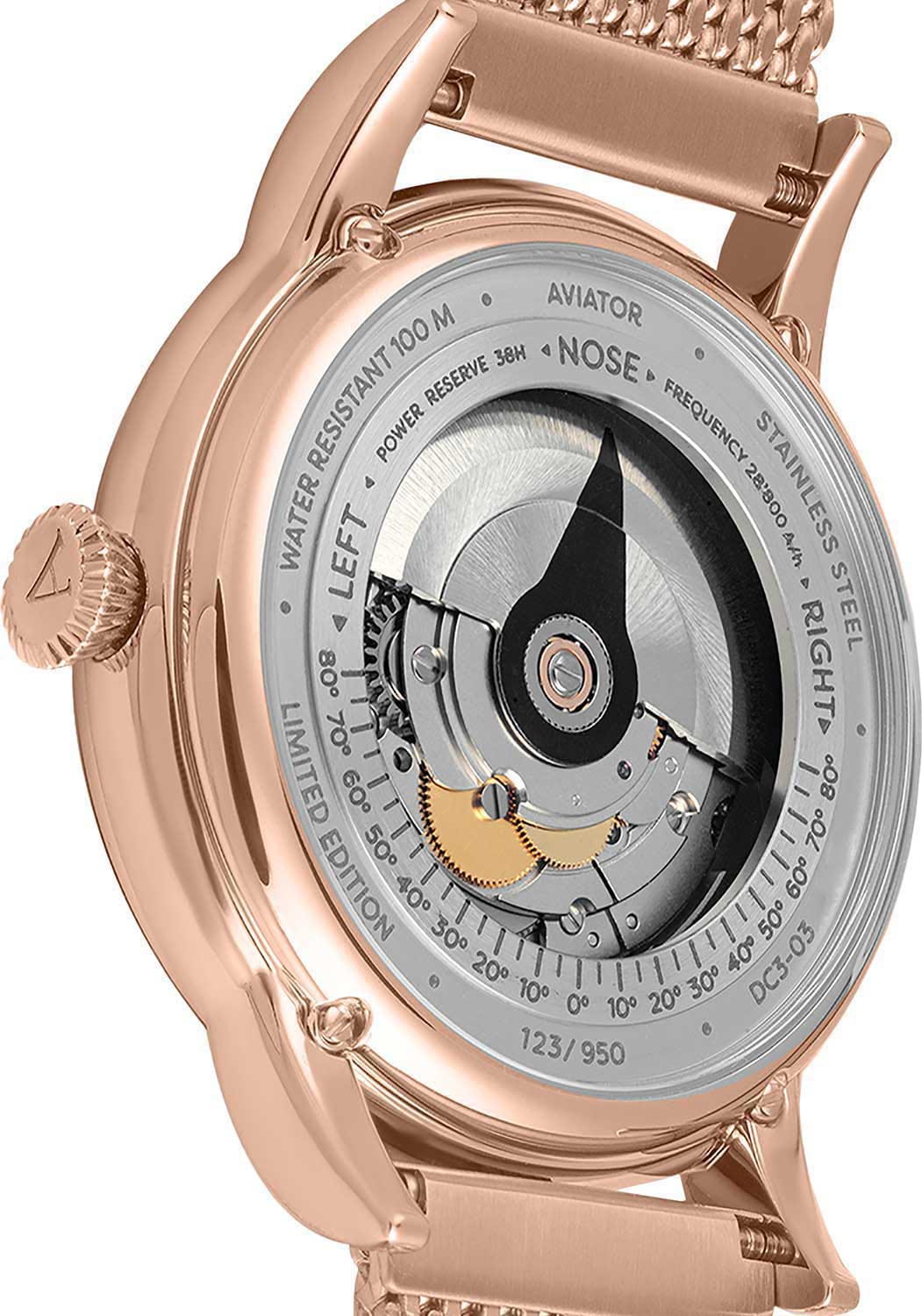 Aviator Douglas DC-3 V.3.32.2.272.5 — швейцарские часы в классике авиадизайна, сочетающие безупречную читаемость и высокую надёжность. Лимитированная серия - 950 экземпляров. Корпус диаметром 45 мм выполнен из нержавеющей стали 316L с PVD-покрытиемPVDУльтратонкое покрытие наносится в технике вакуумного напыления, сочетает в себе нитрид титана особой прочности со слоем золота или оксида хрома. Несёт в себе декоративную или защитную функцию.. Накладные метки выполнены в виде штрихов. Окошко даты находится в положении 6 часов. Часовые метки и стрелки покрыты люминесцентным покрытиемЛюминесцентное покрытиеПозволяет считывать показания времени в темноте. Производители наносят на стрелки, часовые индексы, безель или поверхность циферблата светонакопительный состав, дающий холодное свечение. Superluminova, позволяющим легко определять время даже в тёмное время суток. Поверхность защищена прочным сапфировым стекломСапфировое стеклоПрочный и надёжный материал из кристалла сапфира синтетического происхождения, характеризующийся особой твёрдостью и устойчивостью к царапинам и повреждениям. с антибликовым покрытиемАнтибликовое покрытиеСлой оксида металла в 0,13-0,3 микрон, благодаря которому стекло часов не бликует и не отражает свет. Антибликовое покрытие уменьшает отражение света в 10 раз, обеспечивая отличную читаемость показателей циферблата., устойчивым к царапинам. Сердце модели — швейцарский механизм Sellita SW 200-1, известный своей точностью и долговечностью. Водозащита 100 метров, позволит плавать, нырять и заниматься другими водными видами спорта. Завинчивающаяся головка и задняя крышка обеспечивают уверенную ударопрочностьУдаропрочный корпусМеханизм заключён в корпус, выполненный из современных материалов, устойчивых к ударам, механическим повреждениям и падению с высоты: инновационный пластик, карбон, нержавеющая сталь, титан. и надёжную защиту от влаги и пыли. В механизме 26 камней, запас хода 38 часов. Модель дополнена стальным браслетом миланского плетения с PVD-покрытиемPVDУльтратонкое покрытие наносится в технике вакуумного напыления, сочетает в себе нитрид титана особой прочности со слоем золота или оксида хрома. Несёт в себе декоративную или защитную функцию., закреплённым с помощью раскладной застёжкиРаскладная застёжкаТакой тип застёжки используется только на браслетах из металла. Она никогда не раскрывается полностью, происходит разделение на 2 и более частей. Раскладывающая застёжка снизит вероятность потери часов к минимуму. — для максимального комфорта и лёгкости в повседневном использовании. Циферблат выполнен по технологии sun-ray (солнечные лучи). Коллекция Douglas была разработана в честь известного американского пассажирского самолета Douglas DC-3. Aviator — это образец лётной точности, инженерной чёткости и сдержанной роскоши, идеально подходящий для тех, кто ценит функциональность и уверенность в каждом элементе.