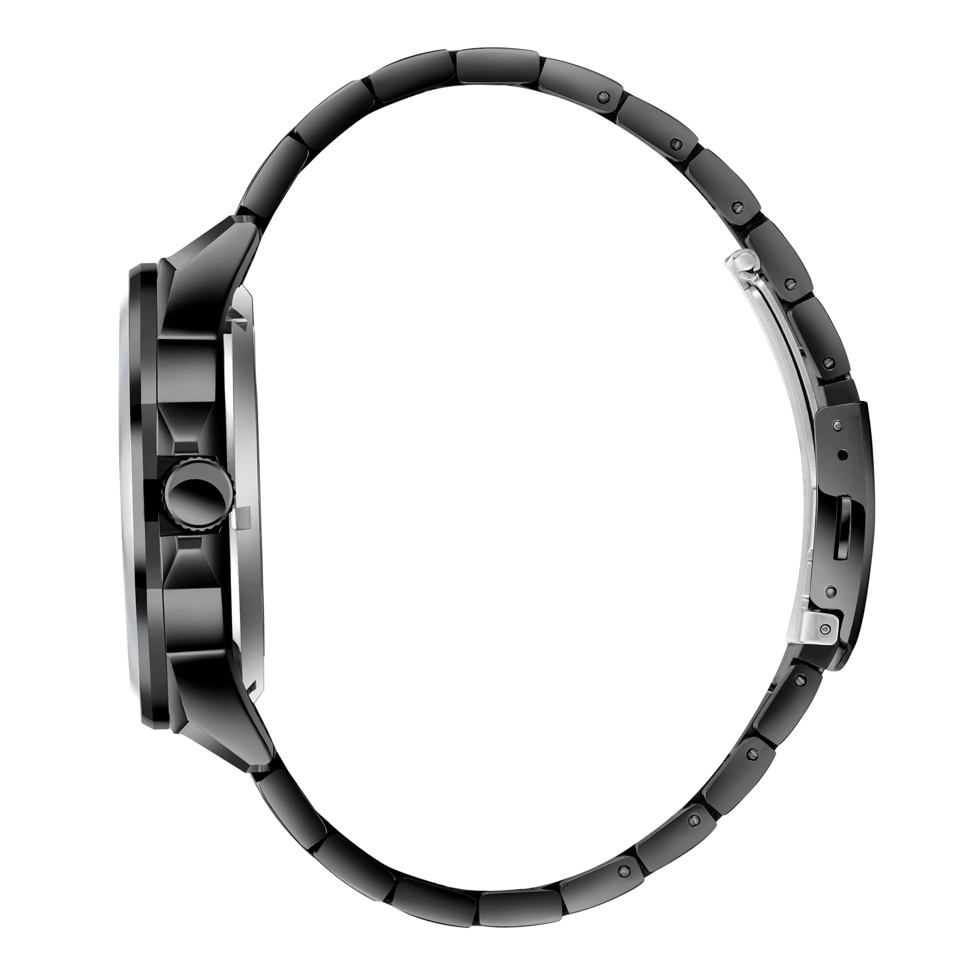 Beverly Hills Polo Club BP3269XS.090 — стильные мужские часы с брутальным дизайном и надёжной функциональностью. Корпус диаметром 48,5 мм выполнен из нержавеющей стали с IP-покрытиемIP-покрытиеМетод ионного напыления. Демонстрирует повышенную устойчивость к истиранию, окислению и химическим веществам. Под воздействием высокого давления и температуры около 1500°C молекулы металла надёжно соединяются с частицами корпуса часов., придающим глубокий чёрный оттенок и дополнительную защиту. Стальной браслет с аналогичным покрытием дополняет общий образ, создавая гармоничный и современный стиль. Минеральное стеклоМинеральное стеклоМинеральное стекло представляет собой искусственно выращенный минерал кварца. Такое стекло отличается особой устойчивостью к повреждениям и царапинам. Уступает по некоторым качествам сапфировому стеклу. с сапфировым покрытием обеспечивает дополнительную устойчивость к царапинам и идеальную прозрачность. Автоматический механизм с функцией автоподзавода избавляет от необходимости заводить часы вручную. Водонепроницаемость 100 метров позволяет использовать модель не только в повседневной жизни, но и при плавании. В комплекте поставляются стильные металлические запонки, выполненные в едином дизайне с часами. Их лаконичный и элегантный вид подчёркивает внимание к деталям и идеально дополняет деловой или торжественный образ.