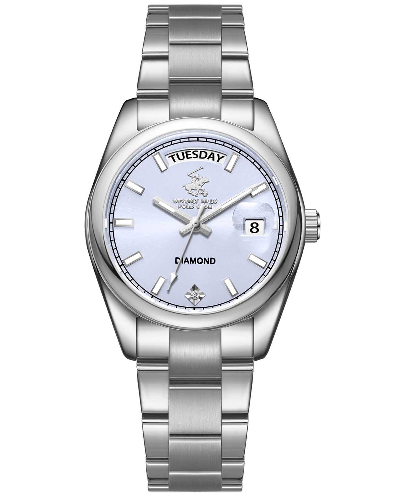 Beverly Hills Polo Club BP3709X.360 – элегантные женские часы, сочетающие стильный дизайн и высокую функциональность. Корпус диаметром 34 мм выполнен из стали, обеспечивающего прочность и долговечность. Циферблат украшен синтетическим бриллиантом, придающим модели роскошный вид, и защищён минеральным стекломМинеральное стеклоМинеральное стекло представляет собой искусственно выращенный минерал кварца. Такое стекло отличается особой устойчивостью к повреждениям и царапинам. Уступает по некоторым качествам сапфировому стеклу., устойчивым к царапинам. Часы оснащены точным кварцевым механизмом, гарантирующим надёжное отображение времени. Браслет из нержавеющей стали оснащён раскладной застёжкойРаскладная застёжкаТакой тип застёжки используется только на браслетах из металла. Она никогда не раскрывается полностью, происходит разделение на 2 и более частей. Раскладывающая застёжка снизит вероятность потери часов к минимуму., обеспечивающей комфортное ношение и надёжную фиксацию на запястье. Водозащита до 50 метров (5 ATM) позволяет использовать часы в повседневной жизни, включая кратковременное погружение в воду.