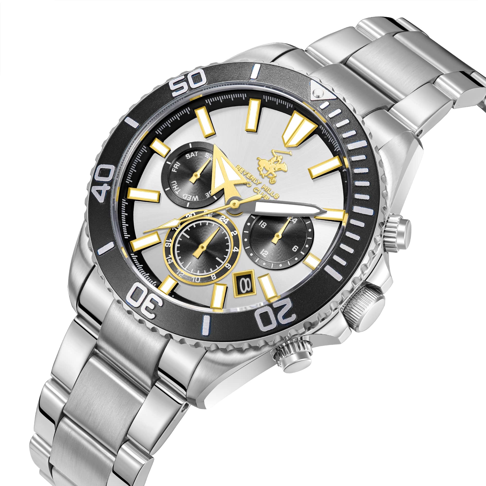 Часы Beverly Hills Polo Club BP3721X.330 — это гармоничное сочетание силы, стиля и современных технологий. Выполненные из высококачественной нержавеющей стали, минеральное стеклоМинеральное стеклоМинеральное стекло представляет собой искусственно выращенный минерал кварца. Такое стекло отличается особой устойчивостью к повреждениям и царапинам. Уступает по некоторым качествам сапфировому стеклу., защищающее циферблат, надёжно оберегает его от царапин, сохраняя яркий блеск. БезельБезельВнешний ободок, закрепляющий стекло. В спортивных часах так называется поворотное кольцо с делениями на циферблате, выполняет роль таймера – замеряет отрезки времени на шкале. Неподвижный безель – элемент декора. Однонаправленно вращающийся безель на дайверских часах позволяет фиксировать моменты погружения и выныривания на поверхность. с PVD-покрытиемPVDУльтратонкое покрытие наносится в технике вакуумного напыления, сочетает в себе нитрид титана особой прочности со слоем золота или оксида хрома. Несёт в себе декоративную или защитную функцию.. С уровнем водозащиты до 100 метров, эти часы готовы сопровождать вас в любых водных приключениях: будь то плавание, ныряние или активные занятия спортом. Стальной браслет на раскладной застёжкеРаскладная застёжкаТакой тип застёжки используется только на браслетах из металла. Она никогда не раскрывается полностью, происходит разделение на 2 и более частей. Раскладывающая застёжка снизит вероятность потери часов к минимуму.. На циферблате отображается не только текущее время, но и такие полезные функции, как дата, день недели, 24-часовой формат.Стрелки с люминесцентным покрытиемЛюминесцентное покрытиеПозволяет считывать показания времени в темноте. Производители наносят на стрелки, часовые индексы, безель или поверхность циферблата светонакопительный состав, дающий холодное свечение. придают удобство в использовании в темное время суток. Эта модель — истинное воплощение философии Beverly Hills Polo Club: сочетание высоких стандартов качества и неподражаемого стиля, создающее аксессуар, который станет вашим верным компаньоном в повседневной жизни.