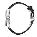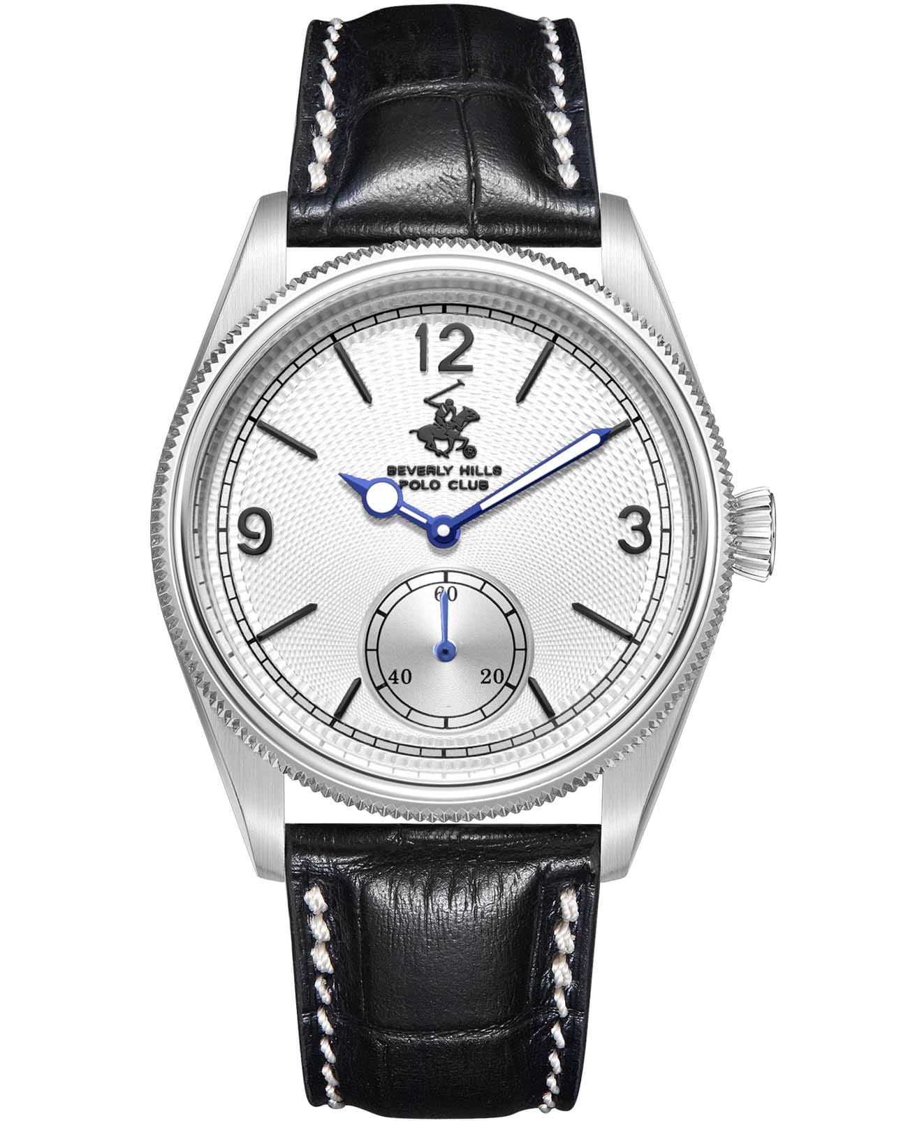 BEVERLY HILLS POLO CLUB BP3807X.331 — стильные мужские часы, сочетающие спортивную динамику и функциональность. Крупный корпус выполнен из нержавеющей стали серебристого цвета, диаметром 39 мм, гармонично дополнен кожаным ремешком на застёжке-бабочке с кнопкамиЗастёжка "бабочка"Такой вид застёжки дополняется предохранителями, помогающими избежать случайного раскрытия браслета. Обладают изящным исполнением. . Рифленый неподвижный безельБезельВнешний ободок, закрепляющий стекло. В спортивных часах так называется поворотное кольцо с делениями на циферблате, выполняет роль таймера – замеряет отрезки времени на шкале. Неподвижный безель – элемент декора. Однонаправленно вращающийся безель на дайверских часах позволяет фиксировать моменты погружения и выныривания на поверхность.. Циферблат с акцентными стрелками с люминесцентным покрытиемЛюминесцентное покрытиеПозволяет считывать показания времени в темноте. Производители наносят на стрелки, часовые индексы, безель или поверхность циферблата светонакопительный состав, дающий холодное свечение. делает модель более практичной. Минеральное стеклоМинеральное стеклоМинеральное стекло представляет собой искусственно выращенный минерал кварца. Такое стекло отличается особой устойчивостью к повреждениям и царапинам. Уступает по некоторым качествам сапфировому стеклу. с сапфировым покрытием защищает циферблат от царапин, а кварцевый механизм обеспечивает высокую точность. Благодаря своей универсальной эстетике эти часы уместны и в деловой среде, и в повседневном образе. Идеальный выбор для тех, кто ценит элегантный дизайн и качество. Водозащита до 50 метров позволит защитить корпус от случайных брызг или капель дождя.
