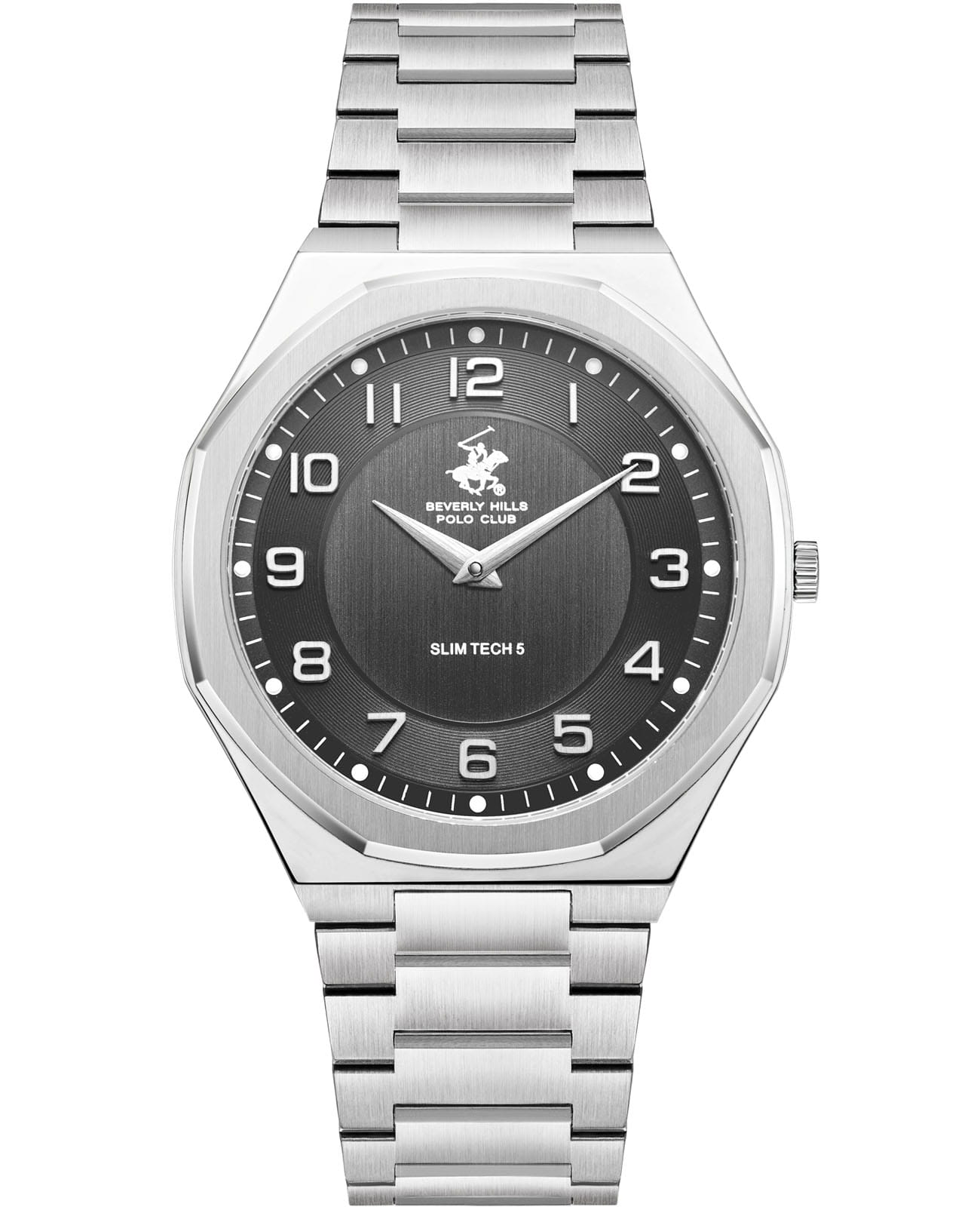BEVERLY HILLS POLO CLUB BP3832X.350 — стильные мужские часы, сочетающие спортивную динамику и функциональность. Крупный корпус выполнен из нержавеющей стали серебристого цвета, диаметром 40 мм, гармонично дополнен стальным браслетом на застёжке-бабочке с кнопкамиЗастёжка "бабочка"Такой вид застёжки дополняется предохранителями, помогающими избежать случайного раскрытия браслета. Обладают изящным исполнением. . Циферблат с акцентными стрелками и метками, что делает модель более практичной. Минеральное стеклоМинеральное стеклоМинеральное стекло представляет собой искусственно выращенный минерал кварца. Такое стекло отличается особой устойчивостью к повреждениям и царапинам. Уступает по некоторым качествам сапфировому стеклу. с сапфировым покрытием защищает циферблат от царапин, а кварцевый механизм обеспечивает высокую точность. Благодаря своей универсальной эстетике эти часы уместны и в деловой среде, и в повседневном образе. Идеальный выбор для тех, кто ценит элегантный дизайн и качество. Водозащита до 50 метров позволит защитить корпус от случайных брызг или капель дождя.
