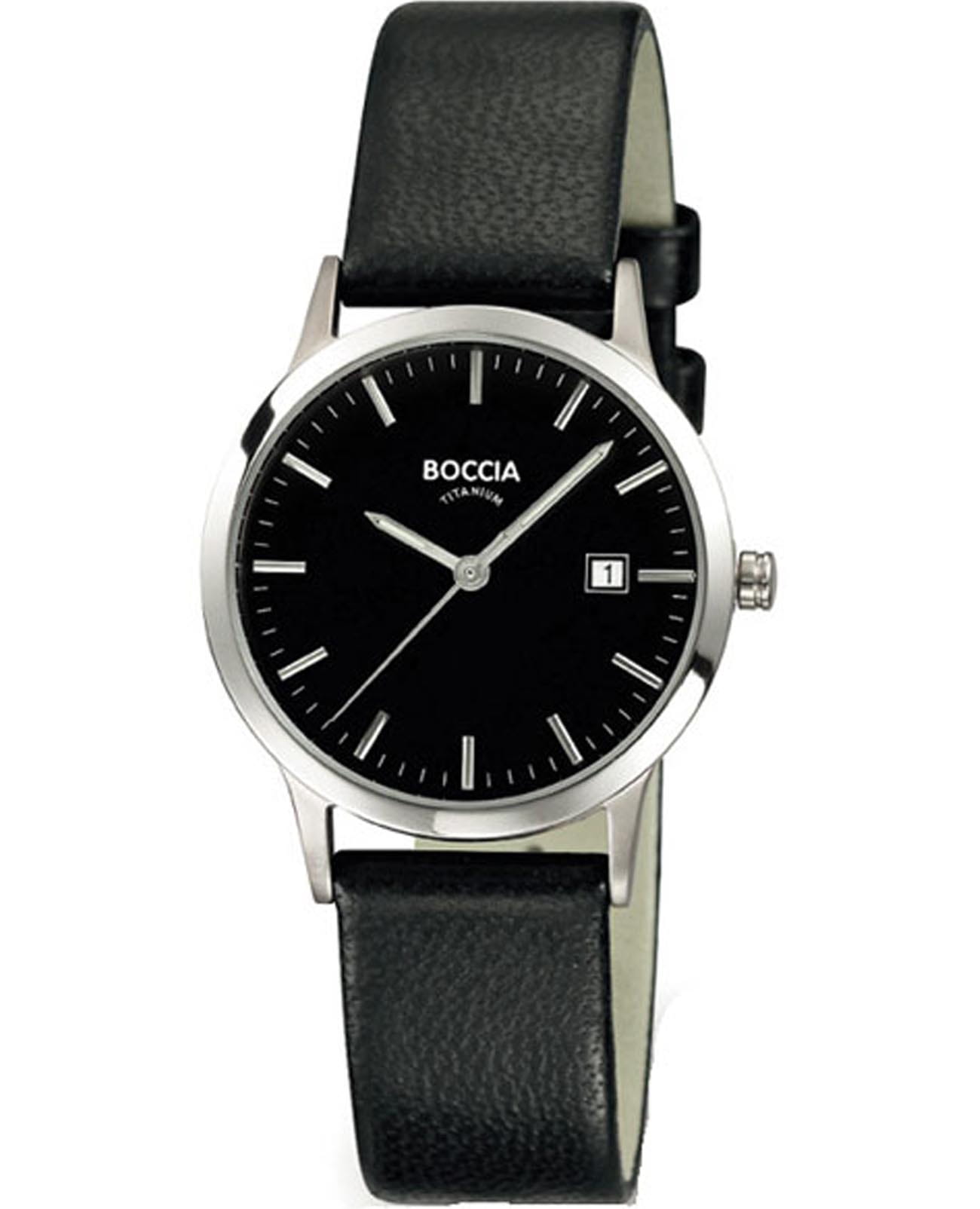 Женские немецкие титановые часы Boccia Titanium Circle-Oval 3180-02, кварцевый механизм с высокой точностью. Минеральное стеклоМинеральное стеклоМинеральное стекло представляет собой искусственно выращенный минерал кварца. Такое стекло отличается особой устойчивостью к повреждениям и царапинам. Уступает по некоторым качествам сапфировому стеклу. устойчивое к появлению царапин, обладающее высокой прозрачностью. Корпус изготовлен из титана. Метки в виде арабских цифр. Класс водозащиты: 50 метров, позволит защитить корпус от случайных брызг или капель дождя. Кожаный ремешок на стандартной застежке. Стрелки и метки с люминесцентным покрытиемЛюминесцентное покрытиеПозволяет считывать показания времени в темноте. Производители наносят на стрелки, часовые индексы, безель или поверхность циферблата светонакопительный состав, дающий холодное свечение..
