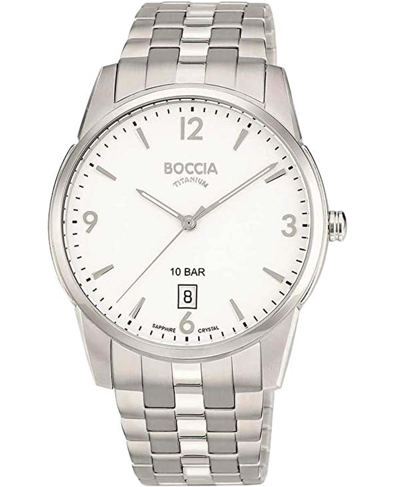 Мужские немецкие титановые часы Boccia Titanium 3632-01, кварцевый механизм с высокой точностью. Сапфировое стеклоСапфировое стеклоПрочный и надёжный материал из кристалла сапфира синтетического происхождения, характеризующийся особой твёрдостью и устойчивостью к царапинам и повреждениям. устойчивое к появлению царапин, обладающее высокой прозрачностью. Корпус изготовлен из титана. Стрелки с люминесцентным покрытиемЛюминесцентное покрытиеПозволяет считывать показания времени в темноте. Производители наносят на стрелки, часовые индексы, безель или поверхность циферблата светонакопительный состав, дающий холодное свечение.. Окошко даты в положении 6 часов. Класс водозащиты: 100 метров, позволит плавать, нырять и заниматься другими водными видами спорта. Браслет из титана на раскладной застёжкеРаскладная застёжкаТакой тип застёжки используется только на браслетах из металла. Она никогда не раскрывается полностью, происходит разделение на 2 и более частей. Раскладывающая застёжка снизит вероятность потери часов к минимуму..