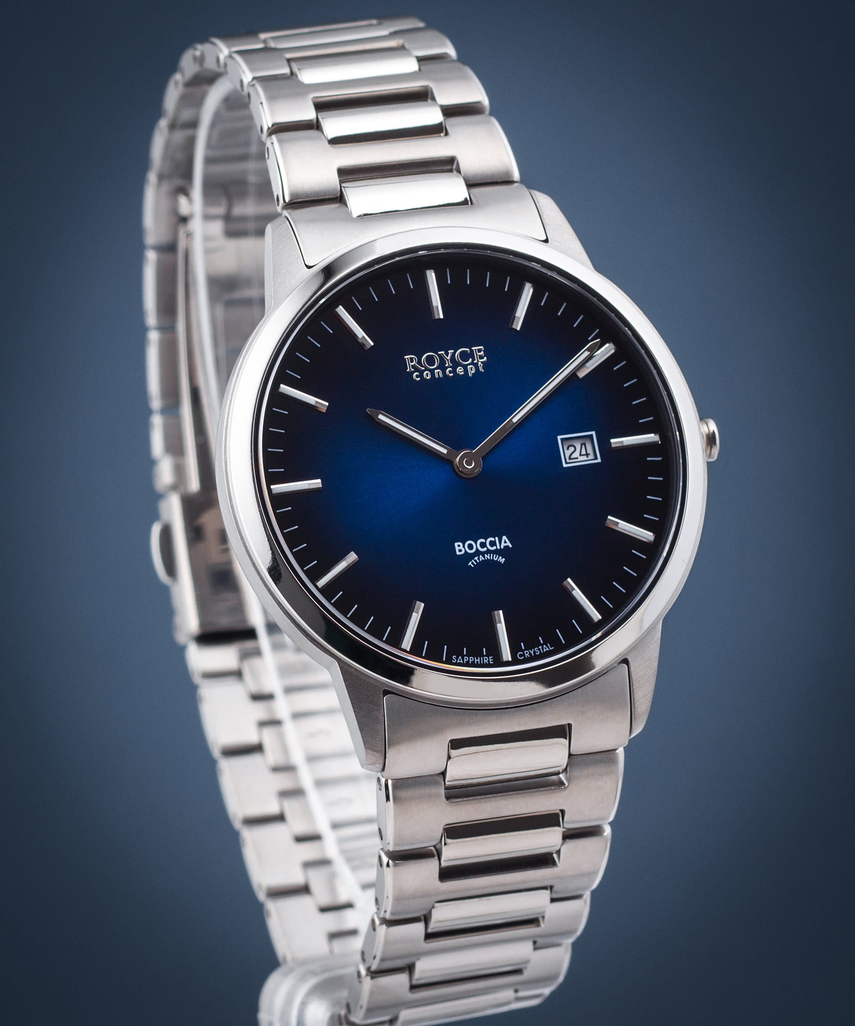 Boccia Titanium 3658-02 – элегантные мужские часы, сочетающие современный стиль и передовые материалы. Корпус и браслет выполнены из титана, что обеспечивает лёгкость, прочность и гипоаллергенные свойства. Синий циферблат защищён сапфировым стекломСапфировое стеклоПрочный и надёжный материал из кристалла сапфира синтетического происхождения, характеризующийся особой твёрдостью и устойчивостью к царапинам и повреждениям., устойчивым к царапинам. Часы оснащены кварцевым механизмом, гарантирующим высокую точность хода. Браслет дополнен раскладной застёжкойРаскладная застёжкаТакой тип застёжки используется только на браслетах из металла. Она никогда не раскрывается полностью, происходит разделение на 2 и более частей. Раскладывающая застёжка снизит вероятность потери часов к минимуму., обеспечивающей удобную посадку и надёжную фиксацию. Водонепроницаемость 50 метров защищает модель от случайных брызг, делая её отличным выбором для повседневного использования.