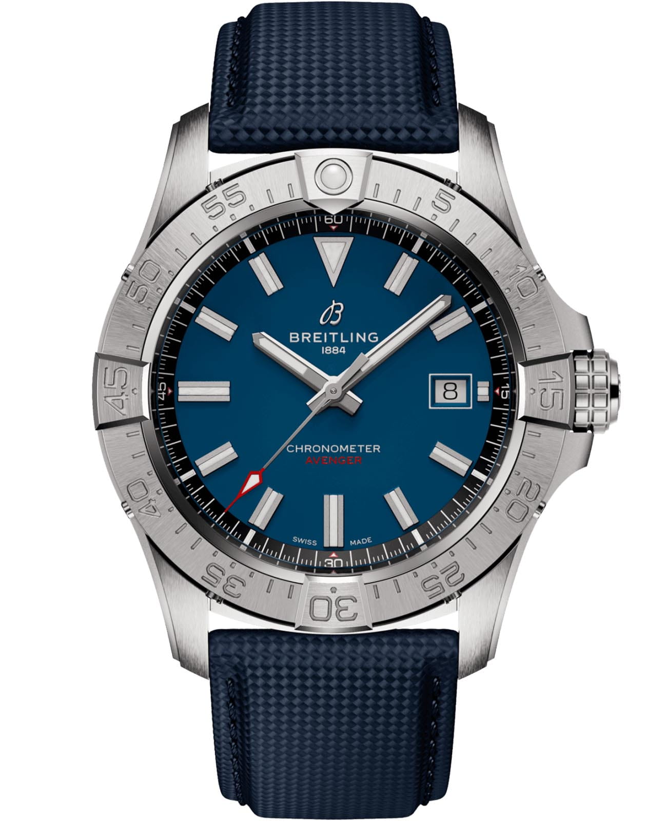 Мужские наручные часы Breitling Avenger Automatic 42 A17328101C1X1 с надёжным автоматическим механизмом. Сапфировое стеклоСапфировое стеклоПрочный и надёжный материал из кристалла сапфира синтетического происхождения, характеризующийся особой твёрдостью и устойчивостью к царапинам и повреждениям. повышенной прозрачности, устойчивое к мелким механическим повреждениям. Вращающийся безельБезельВнешний ободок, закрепляющий стекло. В спортивных часах так называется поворотное кольцо с делениями на циферблате, выполняет роль таймера – замеряет отрезки времени на шкале. Неподвижный безель – элемент декора. Однонаправленно вращающийся безель на дайверских часах позволяет фиксировать моменты погружения и выныривания на поверхность.. Окошко даты находится в положении 3 часа. Стрелки и метки с люминесцентным покрытиемЛюминесцентное покрытиеПозволяет считывать показания времени в темноте. Производители наносят на стрелки, часовые индексы, безель или поверхность циферблата светонакопительный состав, дающий холодное свечение.. Кожаный ремешок на стандартной застёжке. Класс водозащиты: 300 метров, позволит плавать, нырять и заниматься другими водными видами спорта.