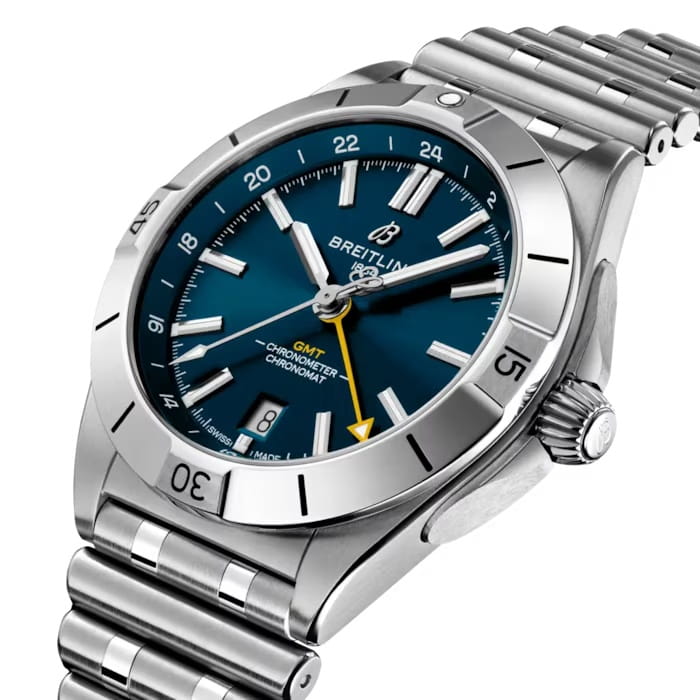 Мужские швейцарские часы Breitling Chronomat Automatic GMT 40 Sporthilfe Limited Edition A323982C1L1A1 механический механизм (автоматический калибр) с высокой точностью. Часы Chronomat Automatic GMTGMTОтображение времени второго часового пояса.Такая функция особенно актуальна для путешественников и бизнесменов,которые общаются с людьми из разных стран,теперь вы всегда будете знать,какой час у вашего партнёра или близкого человека. 40 - это дань уважения Breitling путешествиям не только благодаря дисплею с двумя часовыми поясами, но и благодаря своей непринужденной эстетике. 24-часовая шкала позволяет пользователю отслеживать второй часовой поясВторой часовой поясФункция, позволяющая отображать время двух часовых поясов одновременно. и с первого взгляда определять, день сейчас или ночь, а заводная головка “луковица” (классическая функция хронометра, получившая название из-за своей рифленой формы купола) позволяет легко регулировать время. Сапфировое стеклоСапфировое стеклоПрочный и надёжный материал из кристалла сапфира синтетического происхождения, характеризующийся особой твёрдостью и устойчивостью к царапинам и повреждениям. с антибликовым покрытиемАнтибликовое покрытиеСлой оксида металла в 0,13-0,3 микрон, благодаря которому стекло часов не бликует и не отражает свет. Антибликовое покрытие уменьшает отражение света в 10 раз, обеспечивая отличную читаемость показателей циферблата. устойчивое к появлению царапин, обладающее высокой прозрачностью. Класс водозащиты: 200 метров, позволит плавать, нырять и заниматься другими водными видами спорта. Корпус часов изготовлен из нержавеющей стали, диаметром 40 мм. Стальной браслет на застёжке-бабочке с кнопкамиЗастёжка "бабочка"Такой вид застёжки дополняется предохранителями, помогающими избежать случайного раскрытия браслета. Обладают изящным исполнением. обеспечивает комфортное ношение. Часы имеют сертификат COSCСертификат COSCОфициальный сертификат, подтверждающий то, что часы ходят с особо высокой точностью. Для получения документа часы подвергаются тестовым испытаниям, разработанным швейцарским институтом тестирования хронометров COSC. Допустимая норма для механических часов -4/+6 секунд в день, для кварцевых моделей +/- 0,07 секунд в день., запас хода примерно 42 часа. Стрелки и метки с люминесцентным покрытиемЛюминесцентное покрытиеПозволяет считывать показания времени в темноте. Производители наносят на стрелки, часовые индексы, безель или поверхность циферблата светонакопительный состав, дающий холодное свечение.. Окошко даты находится в положении 6 часов. Известные как “часы на все случаи жизни”, часы Chronomat сейчас актуальны как никогда благодаря практичным размерам GMT 40 и сдержанному стилю.