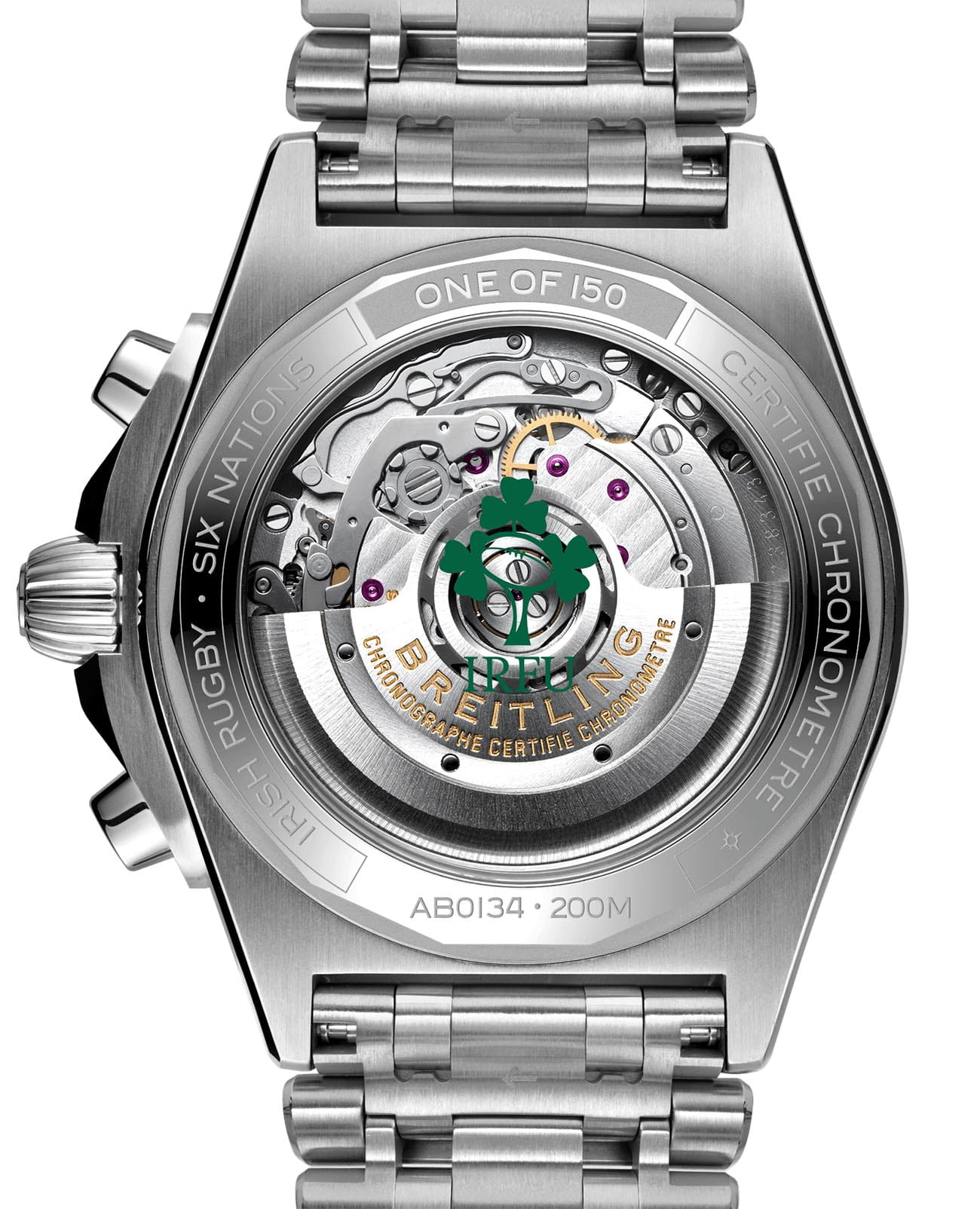 Лимитированные мужские швейцарские часы-хронографХронографФункция позволяет измерять отрезки времени с особой точностью: часы, минуты, секунды. Верным признаком хронографа является наличие на циферблате 3 дополнительных окошек-счётчиков. с секундомеромСекундомерСекундоме́р — прибор, способный измерять интервалы времени с точностью до долей секунды. Breitling Chronomat B01 42 Ireland AB0134A91L1A1, механический механизм (автоматический калибр) с высокой точностью. Основанный на хронографе Frecce Tricolori, который был разработан и выпущен в 1983 году в сотрудничестве со знаменитой итальянской авиационной эскадрильей, Chronomat стильно отпраздновал столетие Breitling и ознаменовал возвращение механическому хронографу его законного места в бренде, который построил свою мировую репутацию на этих невероятных часах. Сапфировое стеклоСапфировое стеклоПрочный и надёжный материал из кристалла сапфира синтетического происхождения, характеризующийся особой твёрдостью и устойчивостью к царапинам и повреждениям. устойчивое к появлению царапин, обладающее высокой прозрачностью. Класс водозащиты: 200 метров, позволит плавать, нырять и заниматься другими водными видами спорта. Корпус и браслет часов изготовлены из нержавеющей стали. Часы имеют сертификат COSCСертификат COSCОфициальный сертификат, подтверждающий то, что часы ходят с особо высокой точностью. Для получения документа часы подвергаются тестовым испытаниям, разработанным швейцарским институтом тестирования хронометров COSC. Допустимая норма для механических часов -4/+6 секунд в день, для кварцевых моделей +/- 0,07 секунд в день.. Стрелки и метки с люминесцентным покрытиемЛюминесцентное покрытиеПозволяет считывать показания времени в темноте. Производители наносят на стрелки, часовые индексы, безель или поверхность циферблата светонакопительный состав, дающий холодное свечение.. Шкала тахиметраТахиметрРазмеченная шкала, располагается на ободке или безеле часов. Тахиметр позволяет рассчитать скорость на определённом участке пути, расстояние измеряется в километрах или милях. на циферблате. Окошко даты находится в положении 6 часов. Браслет с застёжкой-бабочкой с кнопкамиЗастёжка "бабочка"Такой вид застёжки дополняется предохранителями, помогающими избежать случайного раскрытия браслета. Обладают изящным исполнением. .