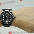 Класс водозащиты: 2000 метров, позволит плавать, нырять и заниматься другими водными видами спорта. Корпус часов изготовлен из нержавеющей стали с высокопрочным углеродным покрытием(DLC).  Каучуковый ремешок черного цвета с раскладной застежкой из нержавеющей стали с DLC-покрытием.