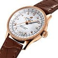 Часы Navitimer Automatic 35 предлагаются в комплекте с браслетом или блестящим синим, коричневым либо бордовым ремешком из кожи аллигатора с классической или раскладной застежкой из нержавеющей стали. Внутри корпуса спрятан мануфактурный калибр Breitling Caliber 17, сертифицированный Швейцарским институтом официального тестирования хронометров (COSC).