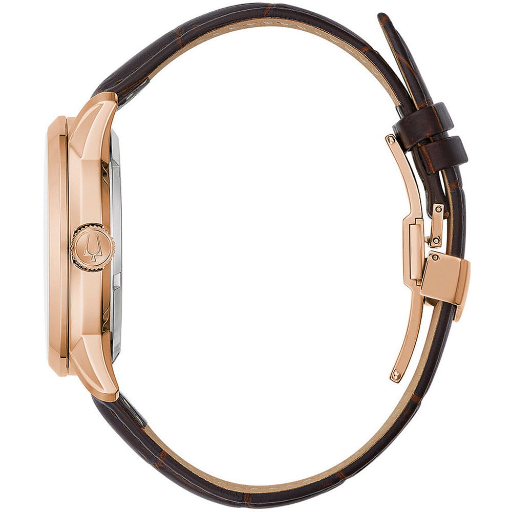 Мужские механические часы-скелетоны с автоподзаводом Bulova Sutton 97A169 – отражающий идеальное сочетание современного дизайна, надёжности и функциональности. Элегантный облик станет превосходным завершением образа, наделив его индивидуальным характером. Корпус из нержавеющей стали с IP-покрытиемIP-покрытиеМетод ионного напыления. Демонстрирует повышенную устойчивость к истиранию, окислению и химическим веществам. Под воздействием высокого давления и температуры около 1500°C молекулы металла надёжно соединяются с частицами корпуса часов. цвета розового золота, диаметром 43 мм идеально сбалансирован и элегантен. Минеральное стеклоМинеральное стеклоМинеральное стекло представляет собой искусственно выращенный минерал кварца. Такое стекло отличается особой устойчивостью к повреждениям и царапинам. Уступает по некоторым качествам сапфировому стеклу. защищает циферблат от царапин и устойчивое к мелким механическим повреждениям. Кожаный ремешок на застёжке-бабочке с кнопкамиЗастёжка "бабочка"Такой вид застёжки дополняется предохранителями, помогающими избежать случайного раскрытия браслета. Обладают изящным исполнением. обеспечивает комфортное ношение. Водозащита 30 метров позволит защитить корпус от случайных брызг или капель дождя. Стрелки с люминесцентным покрытиемЛюминесцентное покрытиеПозволяет считывать показания времени в темноте. Производители наносят на стрелки, часовые индексы, безель или поверхность циферблата светонакопительный состав, дающий холодное свечение. позволяющие легко определять время даже в темноте. Прозрачная задняя крышка. Эта модель – отличный выбор для тех, кто ищет сочетание стиля, качества и функциональности. Часы станут не только полезным аксессуаром, но и выразительным элементом вашего имиджа.