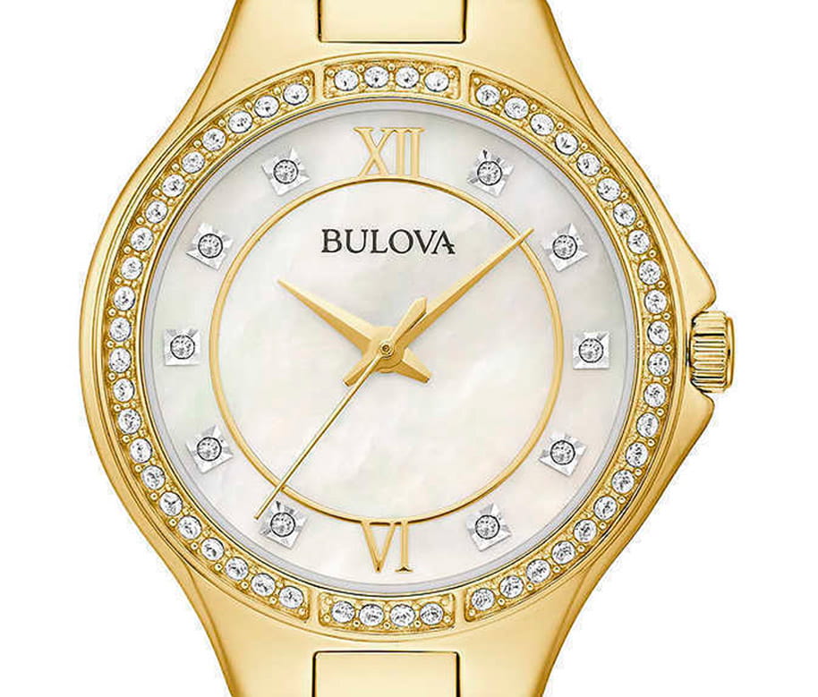 Женские кварцевые часы Bulova Crystal Ladies 98L295 – отражающий идеальное сочетание современного дизайна, надёжности и функциональности. Элегантный облик станет превосходным завершением образа, наделив его индивидуальным характером. Корпус из нержавеющей стали с PVD-покрытиемPVDУльтратонкое покрытие наносится в технике вакуумного напыления, сочетает в себе нитрид титана особой прочности со слоем золота или оксида хрома. Несёт в себе декоративную или защитную функцию., диаметром 30 мм идеально сбалансирован и элегантен. Минеральное стеклоМинеральное стеклоМинеральное стекло представляет собой искусственно выращенный минерал кварца. Такое стекло отличается особой устойчивостью к повреждениям и царапинам. Уступает по некоторым качествам сапфировому стеклу. защищает циферблат от царапин и устойчивое к мелким механическим повреждениям. БезельБезельВнешний ободок, закрепляющий стекло. В спортивных часах так называется поворотное кольцо с делениями на циферблате, выполняет роль таймера – замеряет отрезки времени на шкале. Неподвижный безель – элемент декора. Однонаправленно вращающийся безель на дайверских часах позволяет фиксировать моменты погружения и выныривания на поверхность. и циферблат украшен кристаллами. Стальной браслет с PVD-покрытиемPVDУльтратонкое покрытие наносится в технике вакуумного напыления, сочетает в себе нитрид титана особой прочности со слоем золота или оксида хрома. Несёт в себе декоративную или защитную функцию. на раскладной застёжкеРаскладная застёжкаТакой тип застёжки используется только на браслетах из металла. Она никогда не раскрывается полностью, происходит разделение на 2 и более частей. Раскладывающая застёжка снизит вероятность потери часов к минимуму. обеспечивает комфортное ношение. Водозащита 30 метров позволит защитить корпус от случайных брызг или капель дождя. Эта модель – отличный выбор для тех, кто ищет сочетание стиля, качества и функциональности. Часы станут не только полезным аксессуаром, но и выразительным элементом вашего имиджа.