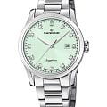 Женские кварцевые часы Candino из коллекции Lady Elegance — это стильный аксессуар, сочетающий швейцарское качество и элегантный дизайн. Корпус диаметром 33 мм и толщиной 8,4 мм выполнен из нержавеющей стали. Циферблат зелёного цвета оформлен индексами и украшен цирконием, придающими изделию изысканность. Окошко даты расположено в положении 3 часов. Циферблат защищён сапфировым стекломСапфировое стеклоПрочный и надёжный материал из кристалла сапфира синтетического происхождения, характеризующийся особой твёрдостью и устойчивостью к царапинам и повреждениям., устойчивым к царапинам. Механизм — кварцевый произведённый в Швейцарии. Часы оснащены стальным браслетом с раскладной застёжкойРаскладная застёжкаТакой тип застёжки используется только на браслетах из металла. Она никогда не раскрывается полностью, происходит разделение на 2 и более частей. Раскладывающая застёжка снизит вероятность потери часов к минимуму.. Водонепроницаемость 50 м позволяет использовать часы в повседневных условиях. Гарантия — 2 года. Идеальный выбор для тех, кто ценит точность, красоту и надёжность.