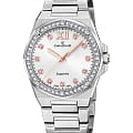 Женские наручные часы Candino Lady Elegance C4751/1 с надёжным кварцевым механизмом. Корпус и браслет часов изготовлены из нержавеющей стали. Сапфировое стеклоСапфировое стеклоПрочный и надёжный материал из кристалла сапфира синтетического происхождения, характеризующийся особой твёрдостью и устойчивостью к царапинам и повреждениям. повышенной прозрачности, устойчивое к мелким механическим повреждениям. Стальной браслет на раскладной застёжкеРаскладная застёжкаТакой тип застёжки используется только на браслетах из металла. Она никогда не раскрывается полностью, происходит разделение на 2 и более частей. Раскладывающая застёжка снизит вероятность потери часов к минимуму.. Стрелки и метки с люминесцентным покрытиемЛюминесцентное покрытиеПозволяет считывать показания времени в темноте. Производители наносят на стрелки, часовые индексы, безель или поверхность циферблата светонакопительный состав, дающий холодное свечение.. Перламутровый циферблат и безельБезельВнешний ободок, закрепляющий стекло. В спортивных часах так называется поворотное кольцо с делениями на циферблате, выполняет роль таймера – замеряет отрезки времени на шкале. Неподвижный безель – элемент декора. Однонаправленно вращающийся безель на дайверских часах позволяет фиксировать моменты погружения и выныривания на поверхность. инкрустированы цирконами. Класс водозащиты: 50 метров, позволит защитить корпус от случайных брызг или капель дождя.