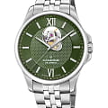 Мужские часы Candino C4780/5 из коллекции Automatic — воплощение изысканности и надежности. Эти часы оснащены автоматическим механизмом, который обеспечивает точное измерение времени без необходимости частой подзаводки. Элегантный зеленый циферблат с открытым механизмом, метками в виде штрихов и римскими цифрами VI и XII придают модели уникальный и современный вид, позволяя заглянуть в сердце механизма. Корпус диаметром 42 мм изготовлен из прочной нержавеющей стали, что гарантирует долговечность и устойчивость к внешним повреждениям. Сапфировое стеклоСапфировое стеклоПрочный и надёжный материал из кристалла сапфира синтетического происхождения, характеризующийся особой твёрдостью и устойчивостью к царапинам и повреждениям. обеспечивает высокую степень защиты от царапин и сохраняет первозданный вид часов на протяжении долгого времени. Стрелки и метки с люминесцентным покрытиемЛюминесцентное покрытиеПозволяет считывать показания времени в темноте. Производители наносят на стрелки, часовые индексы, безель или поверхность циферблата светонакопительный состав, дающий холодное свечение., что облегчает чтение времени даже в условиях слабого освещения. Стальной браслет на раскладной застёжкеРаскладная застёжкаТакой тип застёжки используется только на браслетах из металла. Она никогда не раскрывается полностью, происходит разделение на 2 и более частей. Раскладывающая застёжка снизит вероятность потери часов к минимуму. не только дополняет общую эстетику, но и обеспечивает комфортное ношение на протяжении всего дня. С водонепроницаемостью до 50 метров эти часы подходят для повседневного использования, выдерживая случайные контакты с водой, такие как дождь или мытьё рук. Эти часы станут идеальным аксессуаром для уверенного в себе мужчины, который ценит стиль и функциональность в каждом элементе своего образа.
