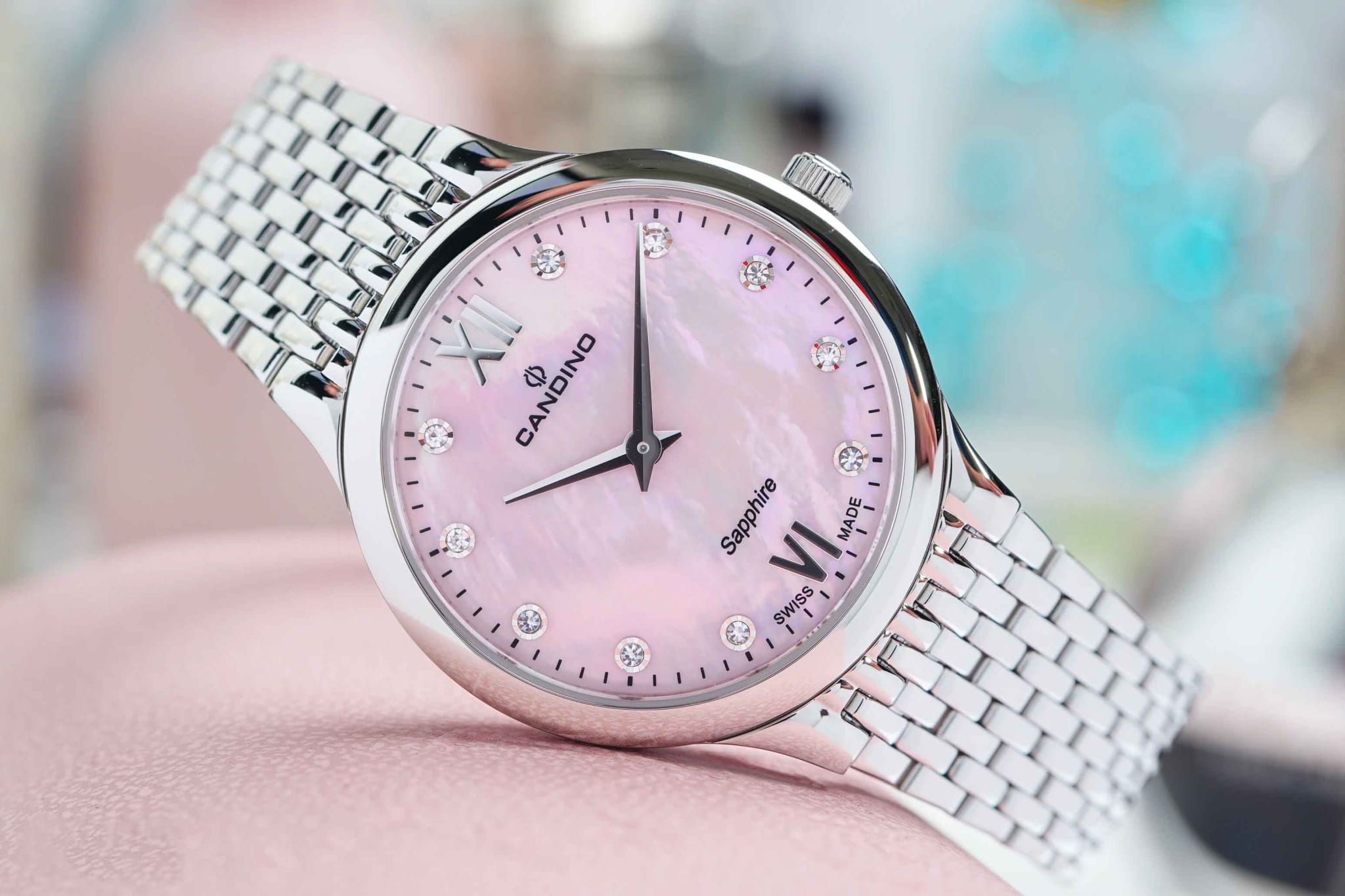 Женские кварцевые часы Candino из коллекции Series 1947 — это утончённый аксессуар, сочетающий швейцарское качество и элегантный дизайн. Корпус диаметром 33,5 мм выполнен из нержавеющей стали. Циферблат розового цвета оформлен индексами в виде точек и украшен циркониями, придающими изделию изысканность. Циферблат защищён сапфировым стекломСапфировое стеклоПрочный и надёжный материал из кристалла сапфира синтетического происхождения, характеризующийся особой твёрдостью и устойчивостью к царапинам и повреждениям., устойчивым к царапинам. Механизм — кварцевый, обеспечивает высокую точность хода и минимальное обслуживание. Часы оснащены стальным браслетом с застёжкой «бабочка» с кнопкамиЗастёжка "бабочка"Такой вид застёжки дополняется предохранителями, помогающими избежать случайного раскрытия браслета. Обладают изящным исполнением. . Водонепроницаемость 50 м позволяет использовать часы в повседневных условиях. Гарантия — 2 года. Идеальный выбор для тех, кто ценит стиль, надёжность и женственность.