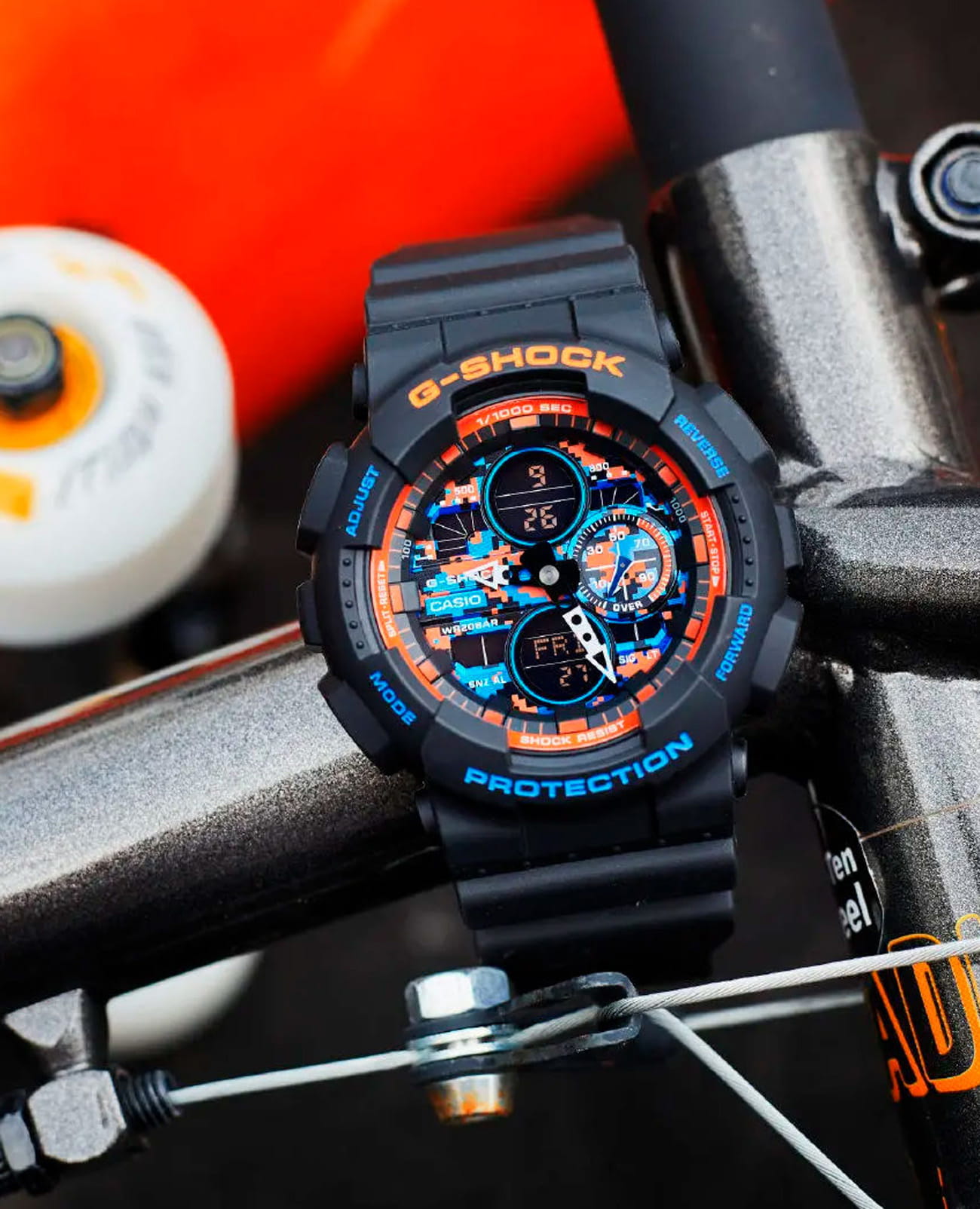 Мужские противоударные японские часы с хронографом Casio G-Shock GA-140CT-1A, электронный механизм с высокой точностью. Класс водозащиты: 200 метров, позволит плавать, нырять и заниматься другими водными видами спорта. Корпус часов изготовлен из пластика, цвета.