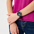 Циферблат подсвечивается светодиодом. Мировое время – 48 городов (31 часовой пояс), всемирное координированное время (UTC). Функция включения/отключения летнего времени. 12-ти и 24-х часовой формат времени. Секундомер с точностью показаний 1/100 сек и временем измерения 24 часа. Сплит-хронограф. Таймер обратного отсчета от 1мин до 24ч. Функция включения/отключения звука.