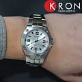 Белый компактный циферблат дополнен красными цветовыми акцентами и крупными арабскими цифрами. Секундная стрелка имеет красный наконечник, облегчающий читаемость показаний. Ударопрочный корпусУдаропрочный корпусМеханизм заключён в корпус, выполненный из современных материалов, устойчивых к ударам, механическим повреждениям и падению с высоты: инновационный пластик, карбон, нержавеющая сталь, титан. и браслет сделаны из долговечной нержавеющей стали 316L. Кварцевый высокоточный механизм. Минеральное стекло устойчиво к возникновению царапин. Стрелки и метки с люминесцентной подсветкойЛюминесцентное покрытиеПозволяет считывать показания времени в темноте. Производители наносят на стрелки, часовые индексы, безель или поверхность циферблата светонакопительный состав, дающий холодное свечение.. Водонепроницаемость при давлении 10 бар. Прямоугольное окошко даты. Габариты: 48 x 41,5 x 9,9 мм.