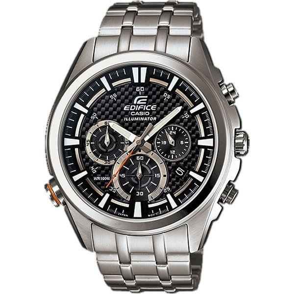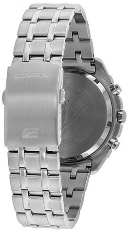 Стильный, мужские наручные часы Casio Edifice надежные и практичные. Кварцевый японский механизм Miyota. Точность хода не хуже -10 +15 сек./в месяц. Часы оснащены функцией хронографа, с точностью 1/10с и временем измерения 1ч. Циферблат черного цвета с контрастными элементами дизайна. Флюорисцентное напыление на стрелках и дисплее часов позволяет отчетливее видеть каждую цифру. Корпус и браслет выполнены из нержавеющей стали. Минеральное стекло устойчиво к появлению царапин. Водонепроницаемость 100М. В часах можно плавать. Степень водонепроницаемости не является величиной, эквивалентной функциональной рабочей глубине.