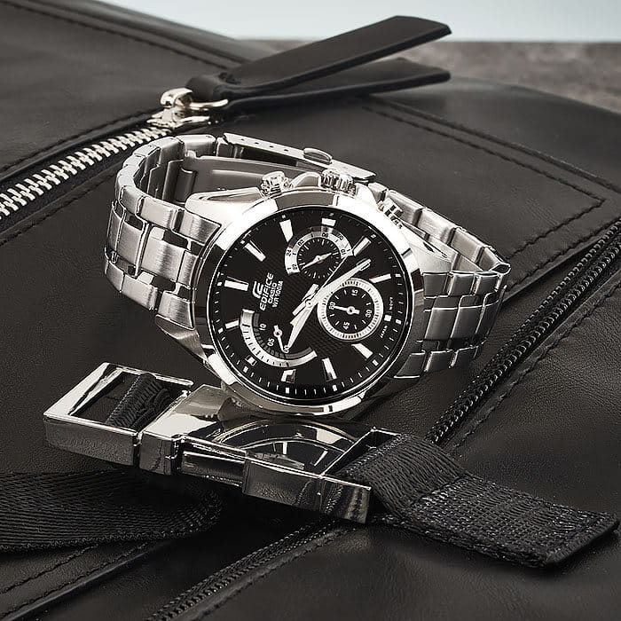 Японские мужские часы из коллекции Edifice, представляющие собой аксессуар с автомобильным характером.