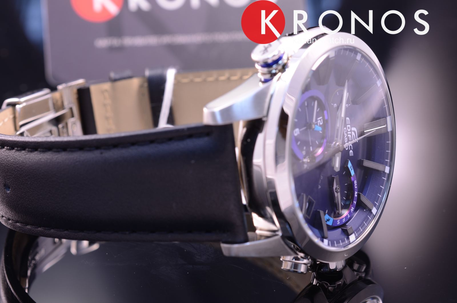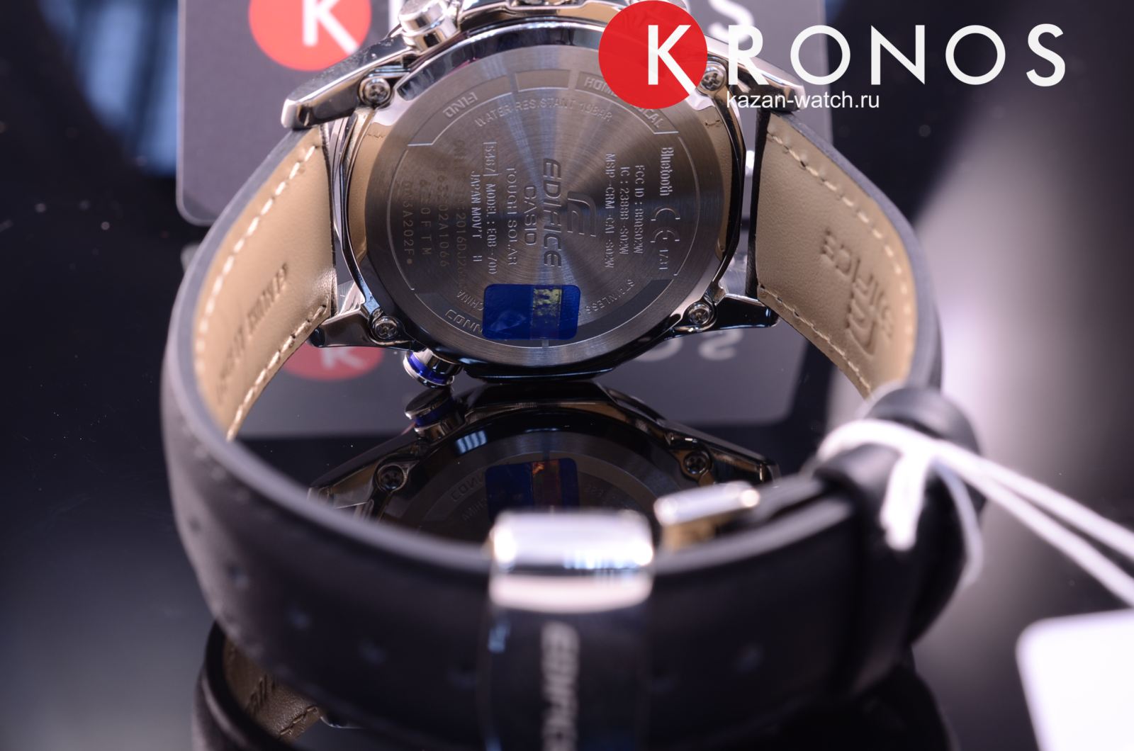 Edifice Bluetooth. Питание от солнечной энергии, индикатор низкого заряда батареи. Функция автоматического сохранения энергии. Светонакопительное покрытие необрит продолжает светиться в темноте даже после непродолжительного пребывания на свету. Беспроводная технология Bluetooth® 4.0 со сверхнизким потреблением энергии для синхронизации со смартфоном. При подключении к смартфону часы корректируют текущее время, а также копируют настройки мирового времени. Функция поиска телефона. Второй часовой пояс. Ретроградный указатель дня недели. Завинчивающаяся заводная головка с защитой, застежка бабочка.