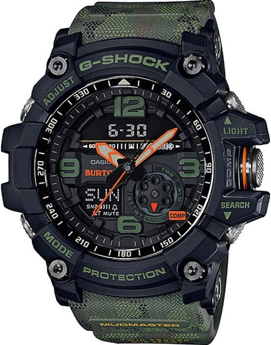 Основные характеристики новинки: ударопрочность, неоновый дисплей, водонепроницаемость до 200 метров, светодиодная подсветка, 5 независимых ежедневных будильников, автоматический календарь, таймер обратного отсчета, секундомер и 12/24 часовой формат, время работы элемента питания – 2 года, стекло – минеральное.  В дополнение к ударопрочности G-SHOCK часы серии MUDMASTER отличаются защитой от проникновения грязи и пыли, их можно уверенно использовать при высокой концентрации песка в воздухе или же в самых грязных условиях. Они обладают специальным строением, благодаря чему механизм часов защищён от попадания внутрь мелких частиц, а особое покрытие защищает корпус и кнопки от внешних воздействий. Также часы устойчивы к любым вибрациям.