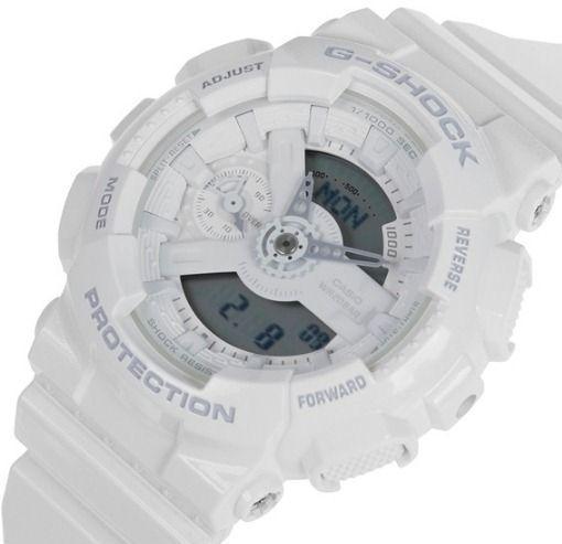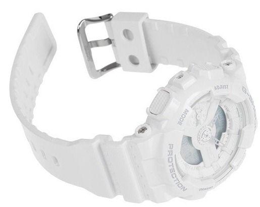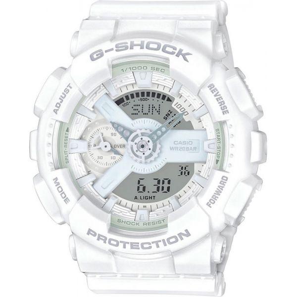 Описание часов Casio GMA-S110CM-7A1  - стильные женские японские наручные часы. Корпус и браслет часов сделаны из полимерного пластика белого цвета. Минеральное стекло, устойчивое к появлению царапин. Часы GMA-S110CM-7A1 снабжены множеством дополнительных функций - секундомер, таймер обратного отсчета, календарь, полностью автоматическая подсветка с автоматической регулируемой автоматизацией. Ежечасный сигнал, повтор сигнала будильника, мировое время. Водонепроницаемость часов до 200 метров (возможны занятия дайвингом). Особый шарм часам придает 3D дизайн - углубленные, объемные индексы и стрелки из матового цвета стали.