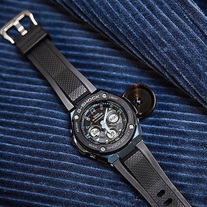 Аксессуар линейки G-Steel отлично смотрится на широком мужском запястье, массивный тёмный циферблат с крупными деталями станет превосходным дополнением для повседневного образа. Это часы на солнечной батарее с технологией , включённая функция сохранения энергии увеличивает время работы аккумулятора без подзарядки до 18 месяцев. Ударопрочный корпусУдаропрочный корпусМеханизм заключён в корпус, выполненный из современных материалов, устойчивых к ударам, механическим повреждениям и падению с высоты: инновационный пластик, карбон, нержавеющая сталь, титан. отличается необычной двухслойной конструкцией, амортизационная полимерная прокладка располагается между пластами из нержавеющей стали 316L. Это обеспечивает появление максимальной устойчивости к ударам и повреждениям. Светодиодная подсветкаСветодиодная подсветкаСветодиодная или LED-подсветка обеспечивает появление яркого холодного свечения за счёт LED-элементов - маленьких лампочек. Они потребляют минимальное количество энергии, чаще всего можно встретить 1 светодиод, в нижней части циферблата. циферблата, стрелки с люминесцентным покрытиемЛюминесцентное покрытиеПозволяет считывать показания времени в темноте. Производители наносят на стрелки, часовые индексы, безель или поверхность циферблата светонакопительный состав, дающий холодное свечение.. Прочный каучуковый ремешок. Минеральное стекло. Водостойкость 20 бар. Частичный IP-финишIP-покрытиеМетод ионного напыления. Демонстрирует повышенную устойчивость к истиранию, окислению и химическим веществам. Под воздействием высокого давления и температуры около 1500°C молекулы металла надёжно соединяются с частицами корпуса часов. корпуса. Функции: автоматический календарь, будильник, хронографХронографФункция позволяет измерять отрезки времени с особой точностью: часы, минуты, секунды. Верным признаком хронографа является наличие на циферблате 3 дополнительных окошек-счётчиков., секундомер, мировое времяМировое время Полезное часовое усложнение, отображающее время в основных городах и известных областях по всему миру, оно связано с часовыми поясами, удобно для путешественников и бизнесменов. , таймер обратного отсчёта, UTCUTCВсемирное кординационное время, не имеющее привязки к географическому положению Гринвича, основывается на атомном отсчёте времени. Регулировка времени осуществляется более точно, чем устаревшее GMT.