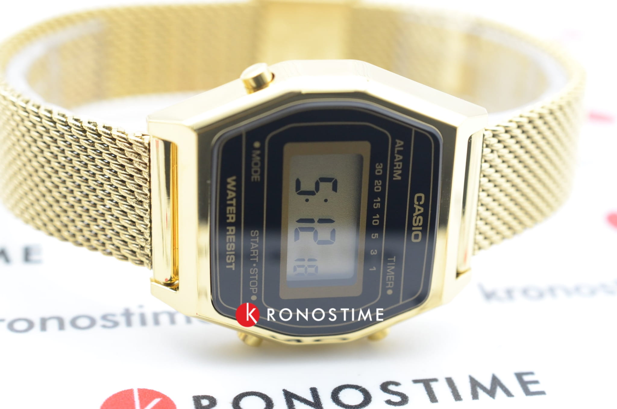 Casio Illuminator LA690WEMY-1EF корпус из полимерного пластика, браслет у часов из прочной нержавеющей стали, часы имеют кварцевый механизм, точность хода +/- 30 с/мес, стеклопластик (органическое) стекло, его практически невозможно разбить, зато довольно легко поцарапать, однако такие стёкла легко шлифуются.