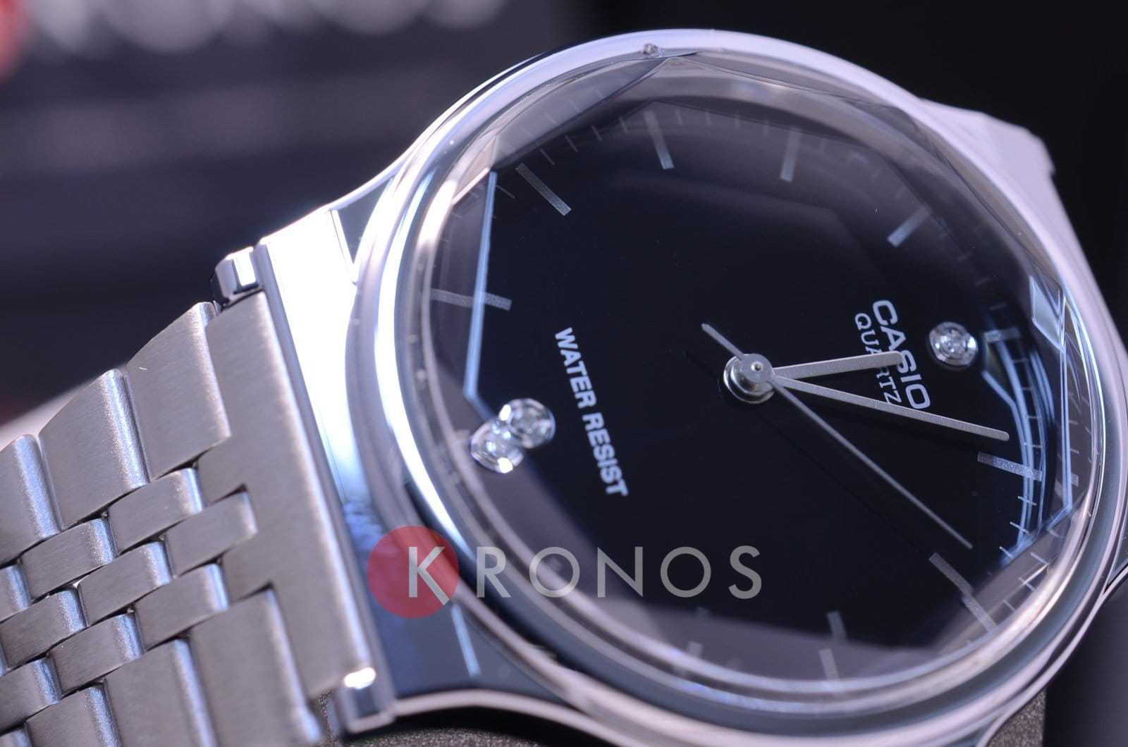 Японские часы CASIO MQ-1000 для женщин. Циферблат украшен настоящим бриллиантом. Круглый полимерный корпус с долговечным гальваническим покрытием и стальной браслет. Полимерное стекло выпуклой формы с ювелирной огранкой. Точный кварцевый механизм.