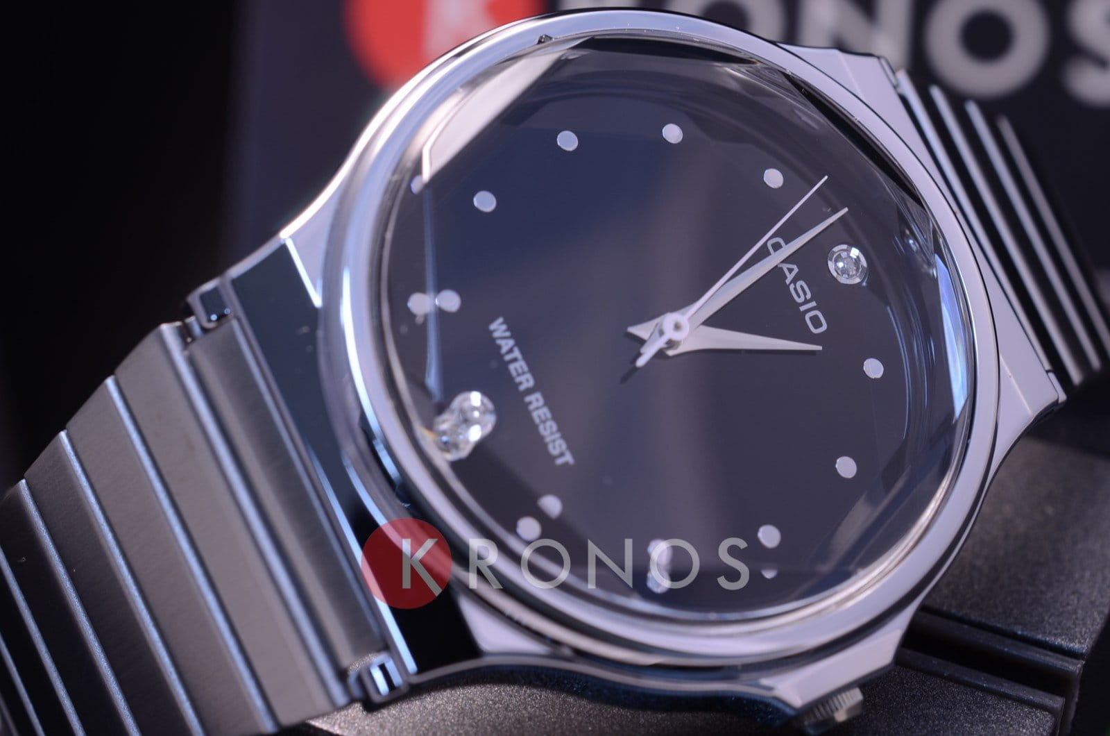 Японские часы CASIO MQ-1000 для женщин. Циферблат украшен настоящим бриллиантом. Круглый полимерный корпус с долговечным гальваническим покрытием и стальной браслет. Полимерное стекло выпуклой формы с ювелирной огранкой. Точный кварцевый механизм.