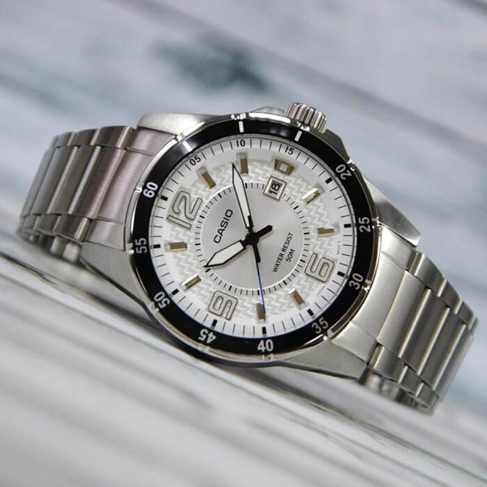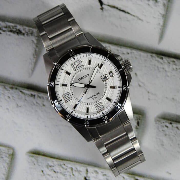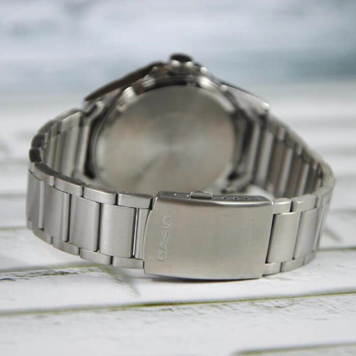 Модный аксессуар от Casio призван покорить сердца ценителей комфорта и практичности. Прочный серебристый корпус из нержавеющей стали плавно отражает падающий свет. Элегантный браслет со звеньями прочно закрепляется на запястье с помощью застежки с тройным сгибом. Штрихи и арабские цифры крупного размера призваны облегчить определение времени. Есть аккуратное окошечко с календарем. Подсветка NeobriteПодсветка NeobriteИспользование светонакопительных составов на основе сульфида цинка или алюмината стронция, яркий свет можно наблюдать на протяжении 6-10 часов после «зарядки» часов около источника света. обеспечивает комфортное определение времени в темное время суток. Минеральное стекло. Тип механизма - кварцевый. Батарейка работает 3 года. Водонепроницаемость равна 50 WR.