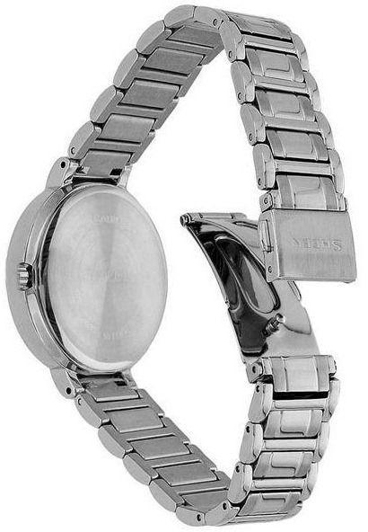 Роскошные японские наручные кварцевые женские часы. Круглый корпус и браслет часов полностью выполнены из высокопрочной стали с антикоррозийными свойствами. Cветлый фон циферблата и стальные элементы дизайна. Водонепроницаемость часов составляет 5 ATM, в часах можно принимать душ и плавать (без ныряния). Минеральное стекло, устойчивое к появлению царапин. Эти роскошные, женственные часы не только крайне привлекательны, но и очень функциональны. Часы синхронизируются с телефоном по системе Bluetooth и работают на солнечных батареях.