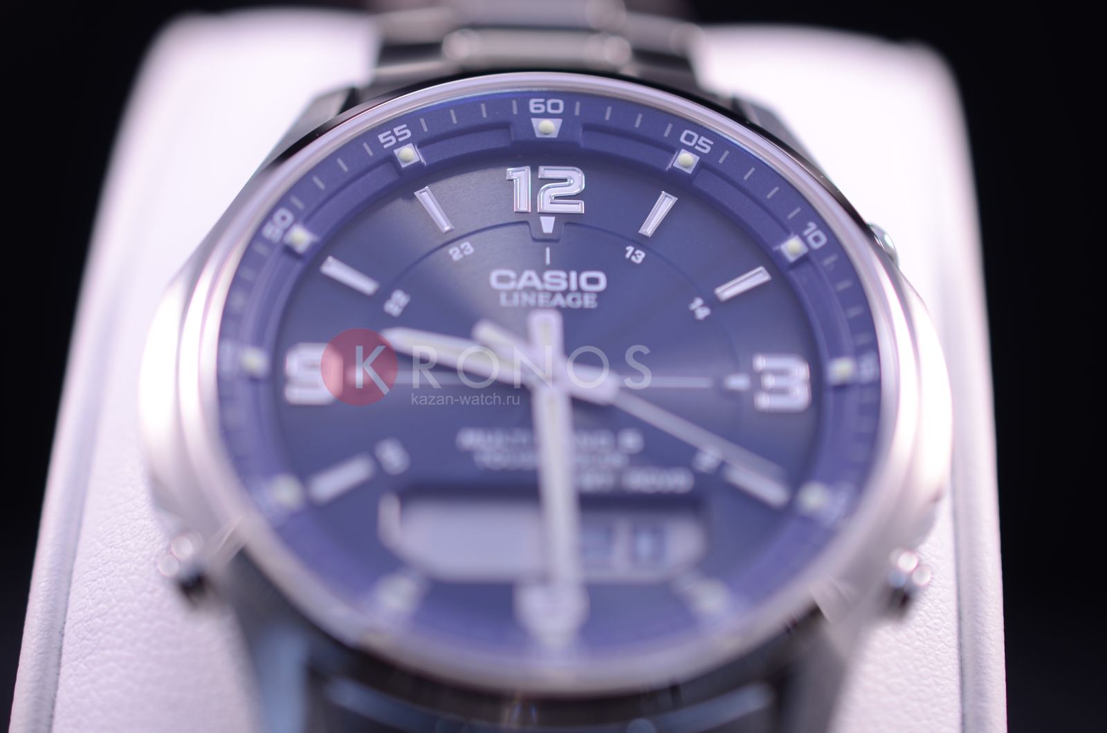 Высокотехнологичные японские наручные мужские часы. Круглый корпус и браслет часов выполнены из нержавеющей стали. Водонепроницаемость 10 ATM.  Круглый циферблат синего цвета. Часы оснащены такими функциями как секундомер, таймер обратного отсчета, будильник, мировое время, второй часовой пояс, прием радиосигнала. Сапфировое стекло не царапается.