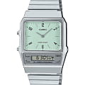 Спортивные японские унисекс часы с секундомеромСекундомерСекундоме́р — прибор, способный измерять интервалы времени с точностью до долей секунды. Casio Vintage AQ-800E-7ADF (AQ-800E-7A2), кварцевый механизм с высокой точностью. Класс водозащиты: 30 метров, позволит защитить корпус от случайных брызг или капель дождя. Корпус часов изготовлен из пластика серебристого цвета. На белом циферблате центральные часовая и минутная стрелки. Отдельно вынесен дополнительный циферблат мирового времениМировое время Полезное часовое усложнение, отображающее время в основных городах и известных областях по всему миру, оно связано с часовыми поясами, удобно для путешественников и бизнесменов. , позволяющий одновременно отобразить время двух часовых поясов . У модели присутствуют функции секундомераСекундомерСекундоме́р — прибор, способный измерять интервалы времени с точностью до долей секунды. с точностью 1/100 секунды и пределом измерения 1 час, ежедневного будильникаБудильникБуди́льник — часы, в заданный момент времени подающие звуковой, световой и/или в редких случаях другой сигнал.. Стальной браслет на раскладной застёжкеРаскладная застёжкаТакой тип застёжки используется только на браслетах из металла. Она никогда не раскрывается полностью, происходит разделение на 2 и более частей. Раскладывающая застёжка снизит вероятность потери часов к минимуму..