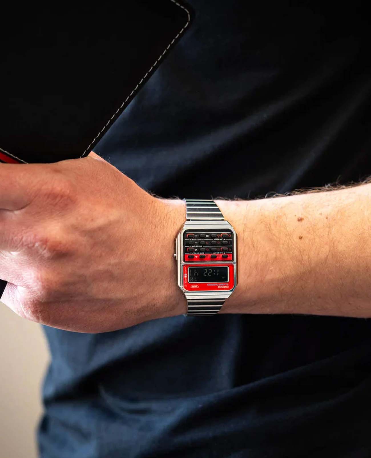 Японские унисекс часы с хронографом Casio Vintage CA-500WE-4B, кварцевый механизм с высокой точностью. Корпус часов изготовлен из пластика, серебристого цвета. Светодиодная подсветкаСветодиодная подсветкаСветодиодная или LED-подсветка обеспечивает появление яркого холодного свечения за счёт LED-элементов - маленьких лампочек. Они потребляют минимальное количество энергии, чаще всего можно встретить 1 светодиод, в нижней части циферблата., секундомерСекундомерСекундоме́р — прибор, способный измерять интервалы времени с точностью до долей секунды. с точностью измерений 1/100 сек., общее время измерений 24 часа. Будильник с функцией Snooze. Автоматический календарь. 8-ми разрядный калькулятор. Класс водозащиты: 30 метров, позволит защитить корпус от случайных брызг или капель дождя. Браслет из стали с IP-покрытиемIP-покрытиеМетод ионного напыления. Демонстрирует повышенную устойчивость к истиранию, окислению и химическим веществам. Под воздействием высокого давления и температуры около 1500°C молекулы металла надёжно соединяются с частицами корпуса часов. на раскладной застёжкеРаскладная застёжкаТакой тип застёжки используется только на браслетах из металла. Она никогда не раскрывается полностью, происходит разделение на 2 и более частей. Раскладывающая застёжка снизит вероятность потери часов к минимуму.. Калькулятор позволяет производить различные математические вычисления, используя числа, содержащие до 8 знаков.