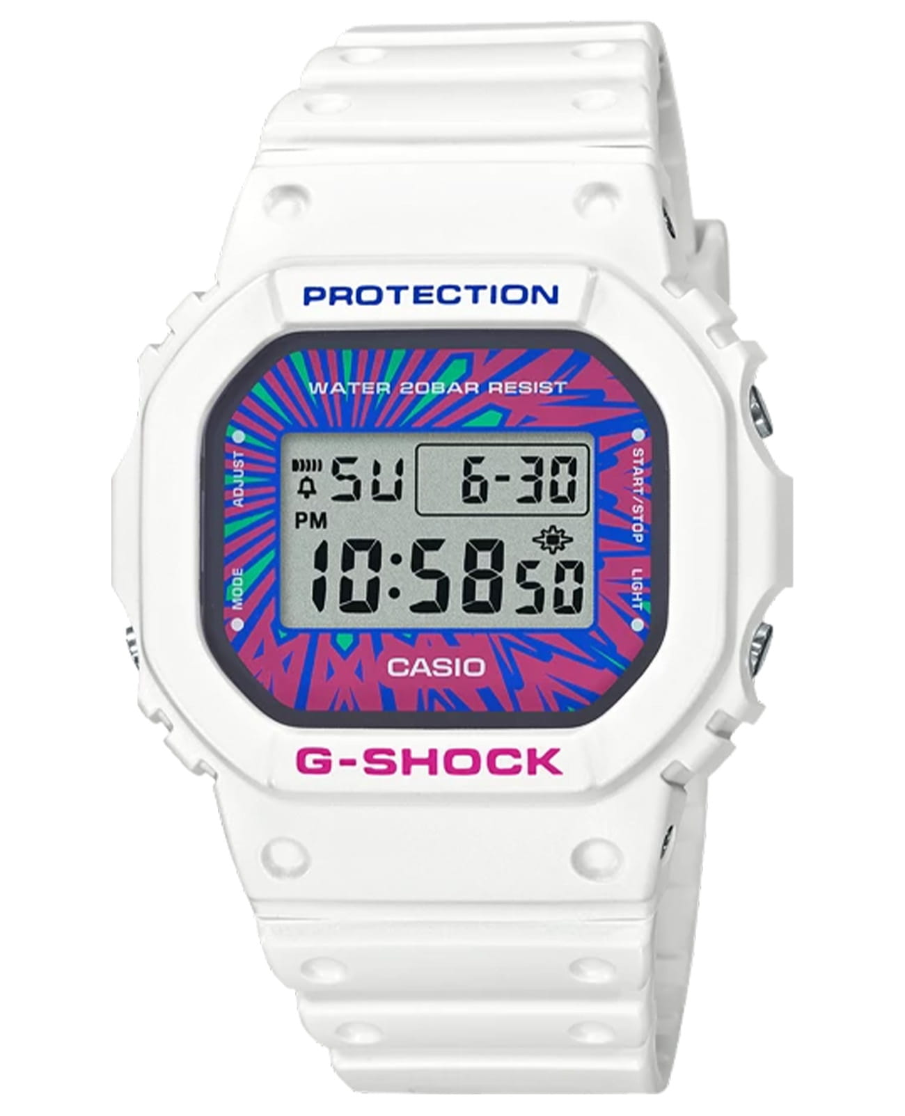 Лимитированная модель с ярким абстрактным рисунком Casio G-Shock DW-5600DN-7, электронный механизм с высокой точностью. Класс водозащиты: 200 метров, позволит плавать, нырять и заниматься другими водными видами спорта. Корпус часов изготовлен из пластика, цвета.